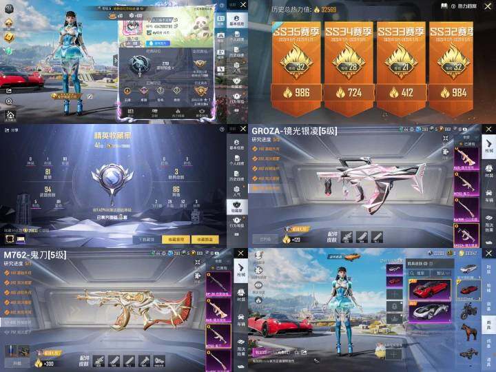 【粉色枪皮等级】:GROZA-镜光银凌(五级),AUG-暖羊咩咩(五级),M762-鬼刀(五级),Kar98K-巳巳如意(五级),DP-28-豹影疾电(四级)
