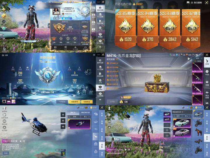 【粉色枪皮等级】:M416-五爪金龙(七级),AUG-暖羊咩咩(五级),M762-青锋波束(五级),Kar98K-巳巳如意(五级),AMR-智耀战神(七级),PKM-江南烟雨(七级)