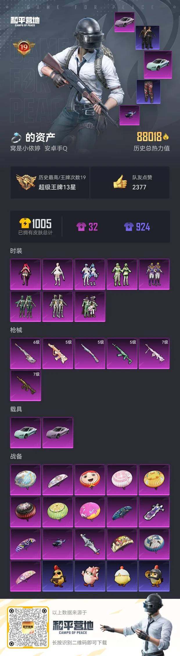 [12810943]安卓 手Q-8粉装-6特效枪-2载具-2粉色飞行器-88062热力值-19王牌印记-206套装-280枪皮