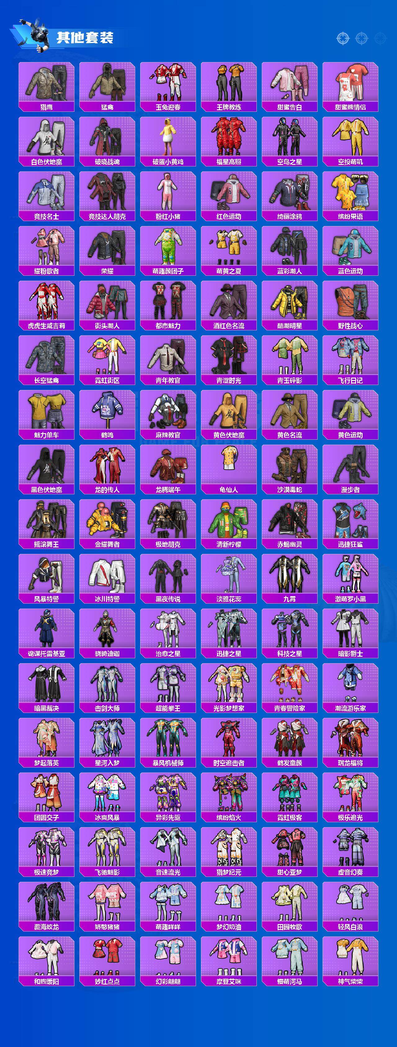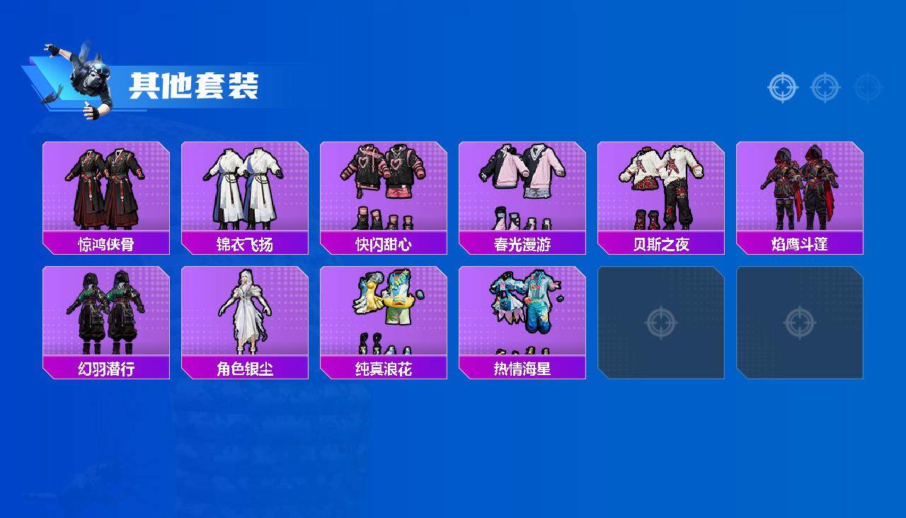 套装-浪漫天命,套装-金羽特工,套装-龟仙人,套装-暗影哥特,套装-粉红小猪,套装-极速红龙,套装-破蛋小黄鸡,套装-漫步者,套装-九霄,套装-梦起落英,套装-瑞龙福将,套装-团圆交子
