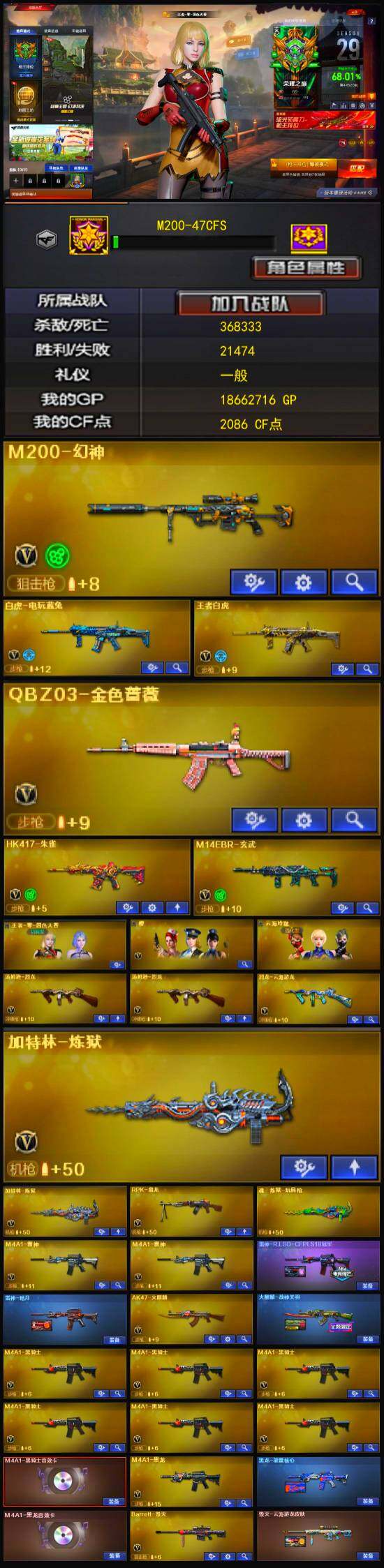 - [12547810]【230】60V/100级/元帅/3王者/1炫金/2英雄/G36C-幻影/QBZ03-金色蔷薇/M200-幻神/金色蔷薇-古蛇迷踪/修罗-古蛇迷踪/死亡之眼/炽芒蝶刃/炫金千变/M200-幻神音效卡/M4A1-雷神音效卡/幻神-电流骇客/星神-漫游/火麒麟-心动糖果/毁灭-暗月/屠龙-星火燎原/炫/晴雅/灵动武士/青霞仙子/火麒麟-灵狐/AWM-灵狐-15周年嘉年华/迷你深渊冰龙/迷你牛魔王/迷你波特博士/夺魂/迷你牛牛/灵狐娃娃手雷/生化手雷-机甲核心/深渊终结者手雷/神圣爆裂者-末日/激光毁灭者/激光毁灭者III-白马银枪/冰龙粉碎者-白马银枪/QBZ03-云龙/COP357-云龙/M4A1-雷霆/烈火-动感闪耀/天神-动感闪耀/屠龙-动感闪耀/手雷-动感闪耀/无影-神兵利器/M4A1-雷神/M4A1-玫瑰精灵/AK47-火麒麟/Barrett-毁灭/Barrett-极光/AK47-黑武士-锦绣游龙/黑骑士-海王/超新星-热带奇洋/M4A1-赤狱骑士/沙鹰-天神/擎天/屠龙/擎天-云海游龙/龙啸-热带奇洋