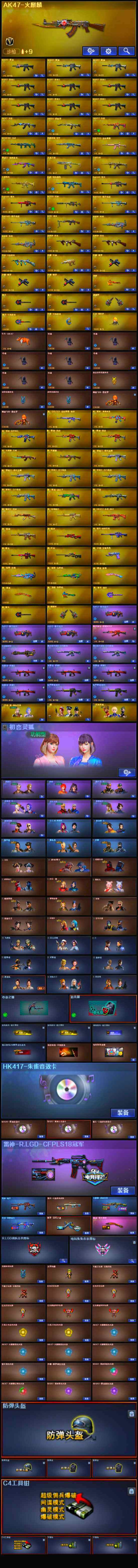 【英雄级武器】:QBZ03-金色蔷薇,M14EBR-玄武,HK417-朱雀,白虎-电玩蓝兔,M4A1-雷神*2,M4A1-黑龙,M4A1-黑骑士*6,RPK-盘龙,加特林-炼狱*2,汤姆逊-烈龙*2,AK47-无影,AK47-火麒麟,AN94-超新星,Barrett-毁灭,Barrett-极光,M200-幻神,黑武士-锦绣游龙,AK-47-猩红传说,沙鹰-天神,沙鹰-修罗*3,麒麟刺,擎天*2,龙啸,擎天-云海游龙