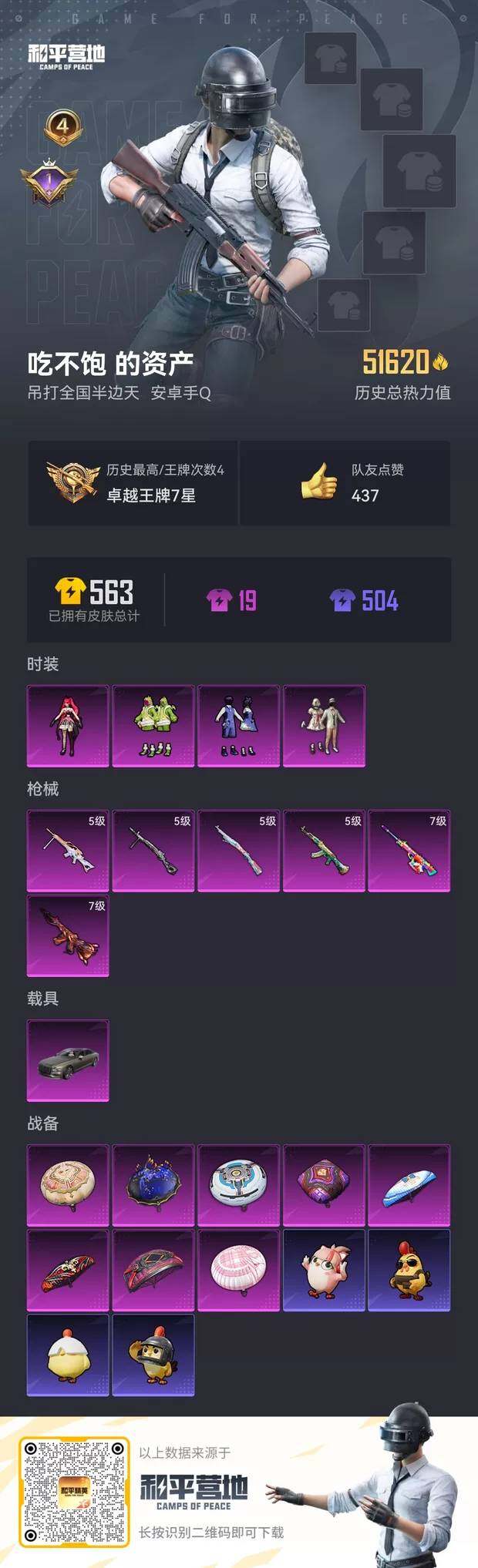 [12813121]安卓 手Q-4粉装-6特效枪-1载具-0粉色飞行器-51620热力值-4王牌印记-114套装-173枪皮