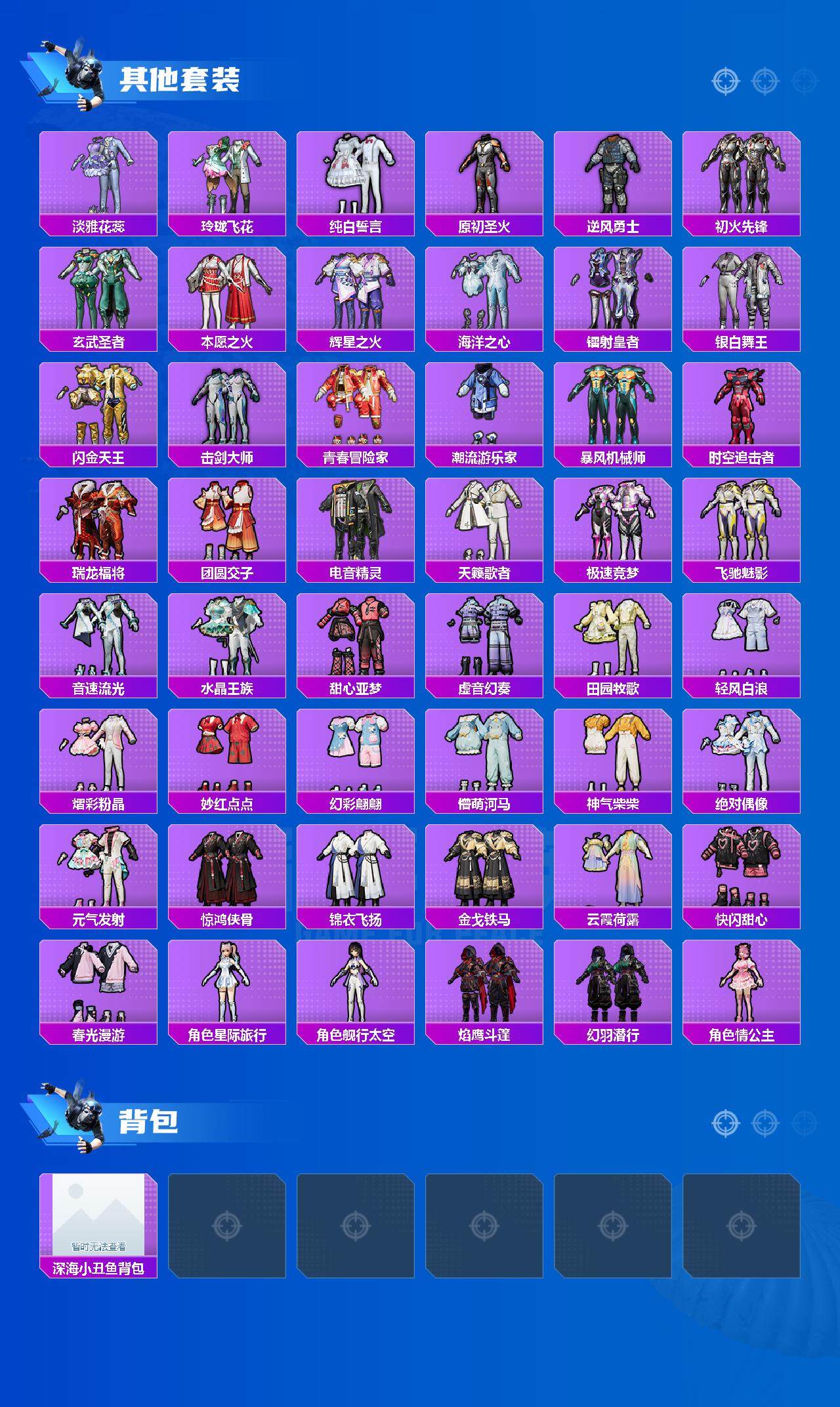 【粉色套装】:粉装-王牌四分卫,角色-洛天依,粉装-银红美神,粉装-炎氏战神,粉装-闲梦青缨,角色-茉莉星,角色-小叽联名款,角色-奇迹舞步 贝贝,角色-奇迹舞步 美琪,角色-奇迹舞步 美雪,角色-羊梦糖心,角色-异瞳寒姬