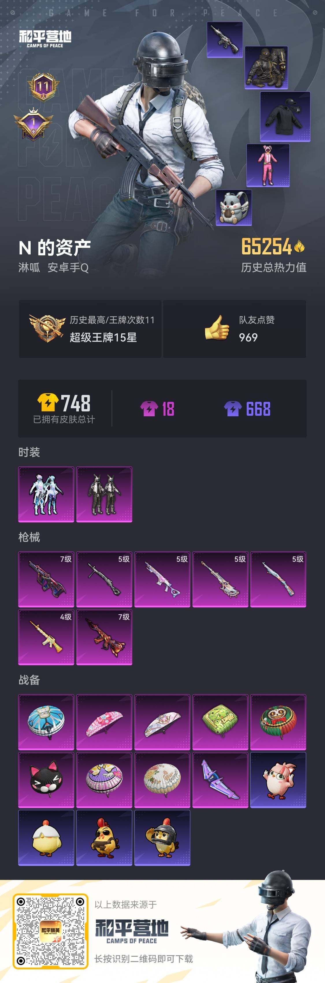 [12814102]安卓 手Q-2粉装-7特效枪-0载具-1粉色飞行器-65254热力值-11王牌印记-152套装-231枪皮