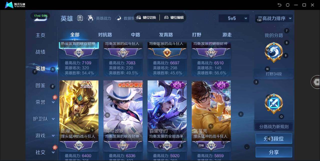 - [11607267]V8 1珍品传说 11传说 123英雄 267皮肤 可修改实名 优质装备:朽木白哉,一念神魔,末日机甲-孙尚香(绿蚂蚱),地狱火,淬星耀世,碎云 传说皮:乘龙·淬吴钩(孙策年限) 珍宝阁皮:蔷薇恋人,女武神 限定皮:愿照·九州拓(澜年限),愿照·岁时盈(虞姬年限),太华(伽罗年限),时之彼端,飞衡(韩信年限),遇见飞天,五谷丰年,梁祝,岱宗(典韦年限),李小龙,永曜之星,辉光之辰,一生所爱,大圣娶亲 史诗皮:化蝶舞,龙之律动,石田雨龙,怒海争锋,百相守梦-黄忠,黄金分割率,特工魅影,永昼,末日机甲-吕布,节奏热浪,摇滚巨星,水果甜心,绅士熊喵,星夜王子,心灵骇客,功夫厨神,暗隐猎兽者,鬼剑武藏,心灵战警,舞动绿茵,地狱岩魂,繁星吟游(呼啦呼啦),拒霜思,乘风破浪,水晶猎龙者,曙光守护者,金属风暴,圣诞恋歌,鹰眼统帅,暗夜贵公子,魅力维加斯,无心