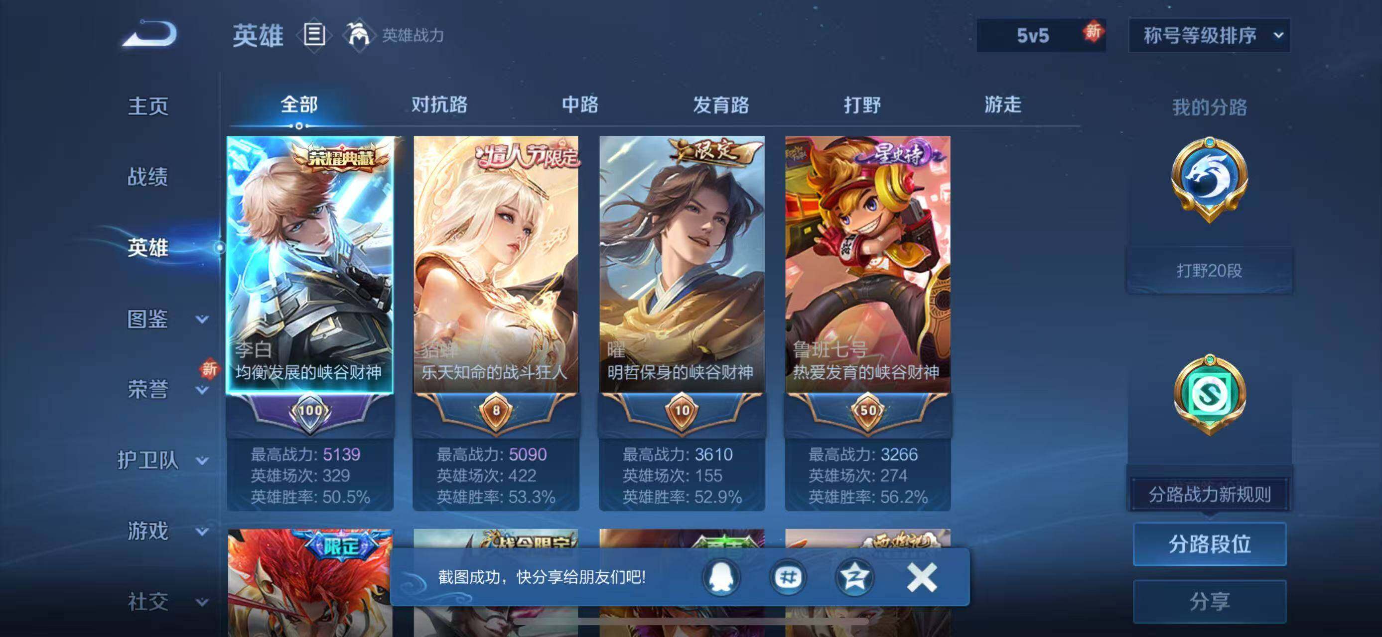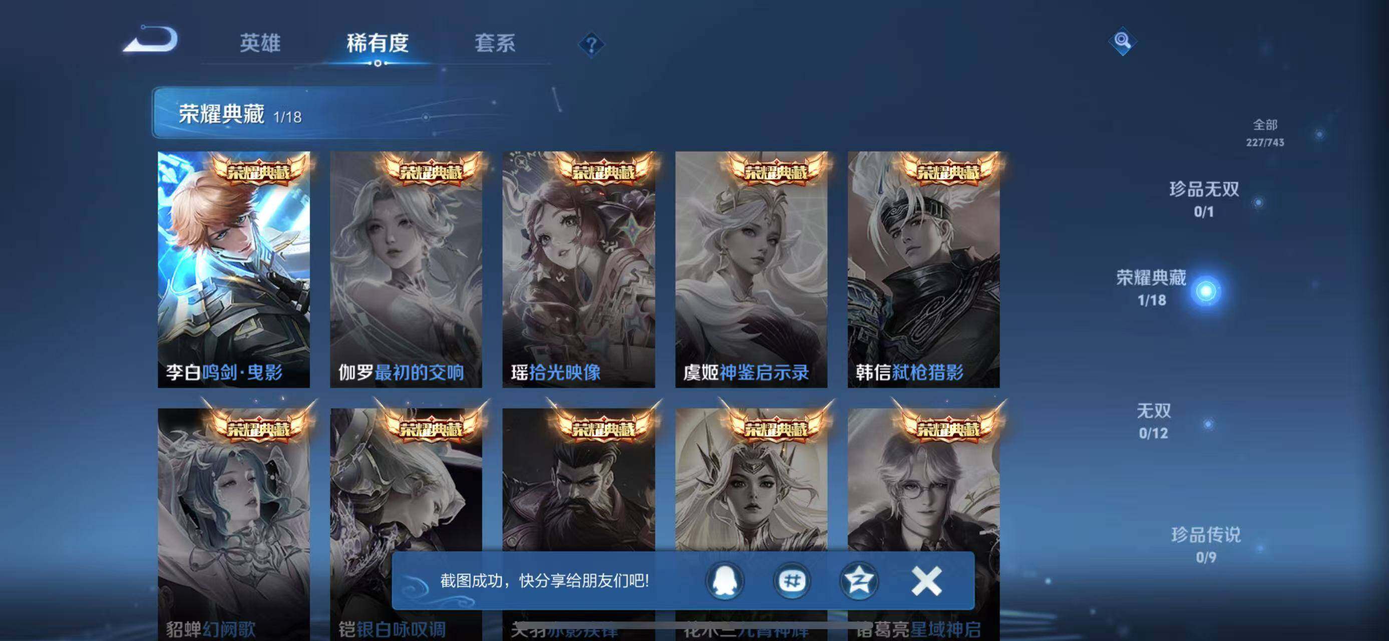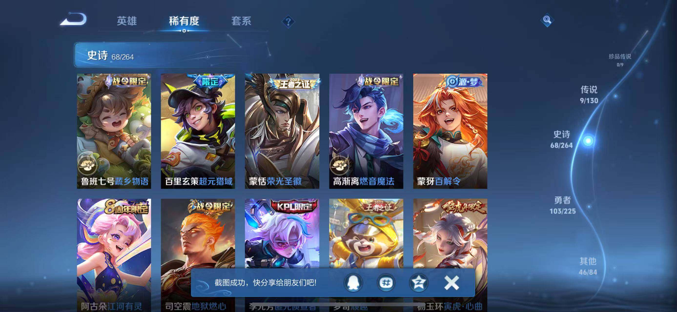 - [12234423]V7 1典藏 4传说 124英雄 236皮肤 可修改实名 优质装备:弑枪猎影(韩信典藏),炽阳神光,胖达荣荣,李逍遥,涂山容容 珍宝阁皮:妄想食味,优雅恋人,蔷薇恋人 限定皮:鸣野蒿,至尊宝,神威(电光马子),高山流水,五谷丰年,冰锋战神,游园惊梦,梁祝,李小龙,如梦令-后羿,霸王别姬-项羽,冰霜恋舞曲 史诗皮:星界战将,龙之律动,石田雨龙,百相守梦-周瑜,百相守梦-黄忠,守夜人,苍穹之光,电玩小子(小书包),白龙吟,黄金分割率,特工魅影,千年之狐,江河有灵,魅语,百解令(蒙犽),蒙恬荣光圣徽,冰冠公主,偶像歌手,猫狗日记-大乔,节奏热浪,修罗,女仆咖啡,水果甜心,绅士熊喵,天才门将,星夜王子,幽灵船长,鬼剑武藏,天秀·启明,地狱岩魂,纤云弄巧,繁星吟游(呼啦呼啦),拒霜思,乘风破浪,逐浪之夏,水晶猎龙者,曙光守护者,金属风暴,原初追逐者,圣诞狂欢,圣诞恋歌,鹰眼统帅,魅力维加斯,黎明之约,无心,未来纪元-赵云