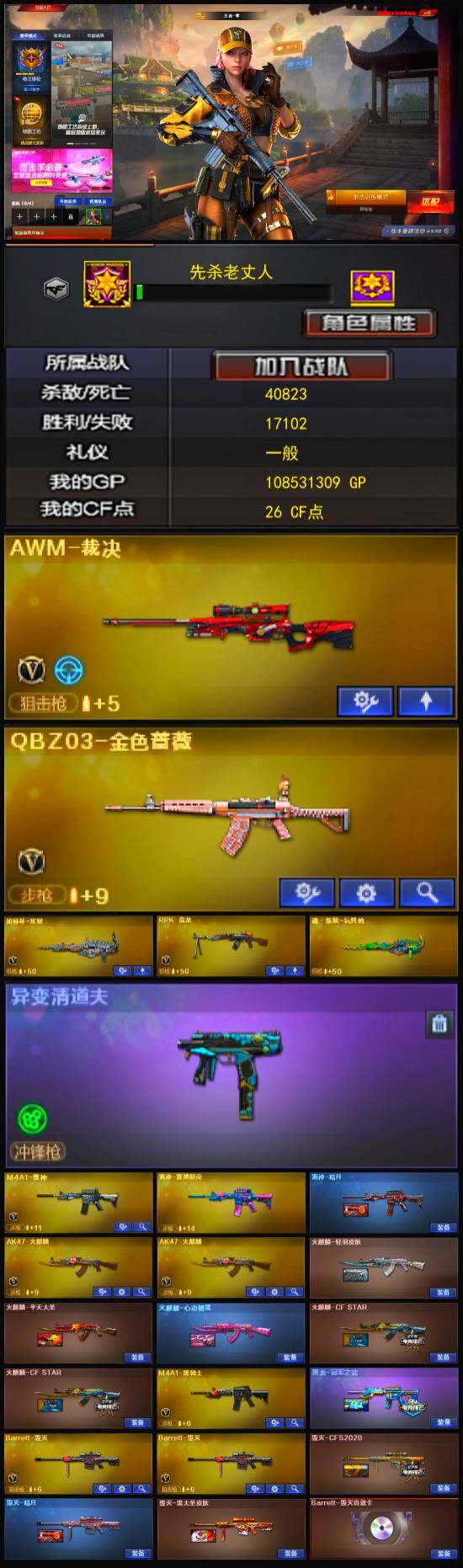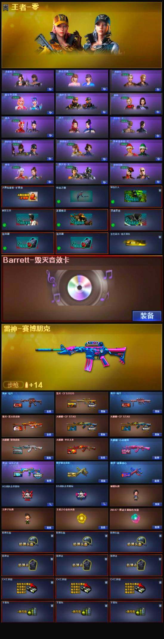 - [13036309]【350】18V/53级/校官/1传说/传说夜影/金色蔷薇-古蛇迷踪/修罗-古蛇迷踪/M200-竞技荣光/M4A1-雷神音效卡/M4A1-黑龙/M4A1-雷神/AWM-裁决/柯尔特-竞技荣光/屠龙/擎天-竞技荣光/高爆手雷-竞技荣光/闪光弹-竞技荣光/烟雾弹-竞技荣光/M4A1-赤狱骑士