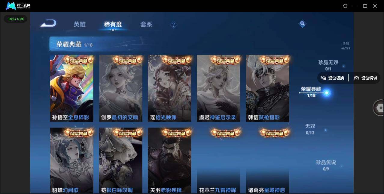 - [12002423]V6 1珍品传说 9传说 119英雄 136皮肤 可修改实名 优质装备:怪盗基德,无双飞将,浮生妄,鹤羽星尊,霜月吟 传说皮:幻光神枪 珍宝阁皮:万物之道,蔷薇恋人 限定皮:愿照·九州拓(澜年限),愿照·岁时盈(虞姬年限),愿照·山河定(司空震年限),傲雪梅枪,绯月行,高山流水,李小龙,逐梦之影,玉兔公主 史诗皮:器灵·浮梦炉,化蝶舞,龙之律动,藏狐·褐绒,茶境仙,芈月浮光幕影,黄金分割率,特工魅影,永昼,江河有灵,百解令(蒙犽),冰冠公主,猫狗日记-孙策,时之恋人-孙尚香,乱世虎臣,节奏热浪,修罗,女仆咖啡,水果甜心,天才门将,星夜王子,心灵骇客,暗隐猎兽者,乘风破浪,逐浪之夏,水晶猎龙者,曙光守护者,金属风暴,圣诞狂欢,圣诞恋歌,鹰眼统帅,魅力维加斯,黎明之约