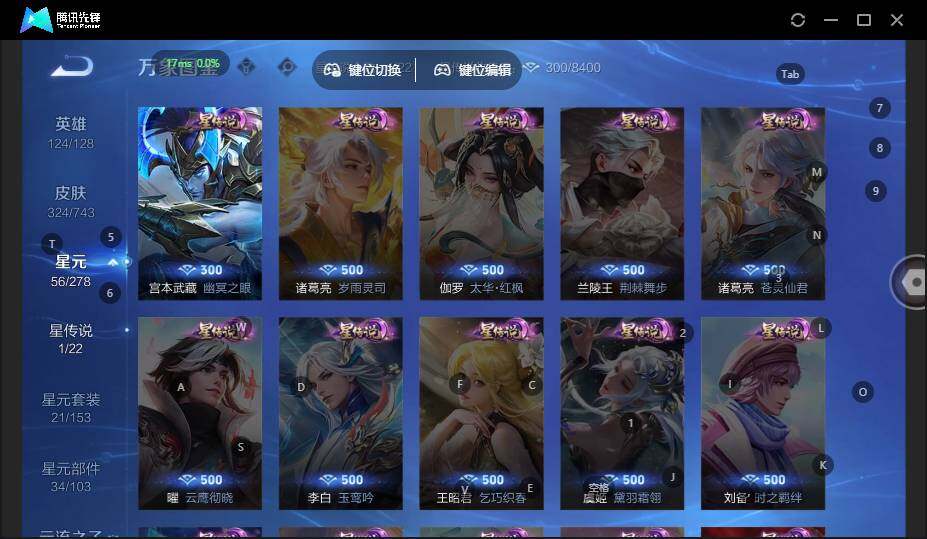 - [11658314]V7 1典藏 6传说 123英雄 222皮肤 可修改实名 荣耀水晶:鸣剑·曳影 传说皮:地狱火,仲夏夜之梦(大飞蛾),一念神魔 珍宝阁皮:优雅恋人,蔷薇恋人 限定皮:至尊宝,白虎志(电光耗子),凤求凰(白切鸡),武陵仙君(小桃花),遇见飞天,五谷丰年,梁祝,天狼狩猎者,李小龙,朱雀志(守约年限),霸王别姬-项羽,默契交锋-花木兰,猪悟能,一生所爱,大圣娶亲,引擎之心,青春决赛季 史诗皮:紫霞仙子,电玩小子(小书包),白龙吟,黄金分割率,特工魅影,千年之狐,江河有灵,冰冠公主,晚萤,龙骑士(小龙虾),末日机甲-吕布,猫狗日记-孙策,乱世虎臣,女仆咖啡,水果甜心,绅士熊喵,天才门将,星夜王子,心灵骇客,功夫厨神,德古拉伯爵,暗隐猎兽者,幽灵船长,鬼剑武藏,心灵战警,舞动绿茵,地狱岩魂,纤云弄巧,繁星吟游(呼啦呼啦),缤纷独角兽,乘风破浪,逐浪之夏,水晶猎龙者,金属风暴,圣诞狂欢,圣诞恋歌,鹰眼统帅,魅力维加斯,未来纪元-赵云