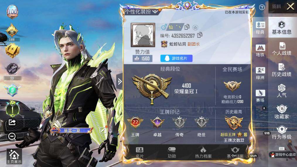- [11687501]总资产:22.1M 2近战传说 22传说枪械 哈夫币:4.521K 高级安全箱(2×3)9.15号到期 可二次 可修改实名 优质装备:近战-黑海,近战-北极星 烽火地带段位:黑鹰 全面战场段位:上等兵 传说武器皮肤:QJB201轻机枪-风林火山,SCAR-H战斗步枪-铁艺苍穹,AK-12突击步枪-夜鹰,SMG45冲锋枪-骑士,M4A1突击步枪-阿米娅,CAR-15突击步枪-阿米娅,复合弓-黑-天际线,AWM狙击步枪-捞点薯条,QCQ171冲锋枪-北极星,腾龙突击步枪-捞点薯条,93R-捞点薯条,AK-12突击步枪-特斯拉线圈,SR-3M紧凑突击步枪-特斯拉线圈,UZI冲锋枪-特斯拉线圈,勇士冲锋枪-能天使-午夜邮差,725双管霰弹枪-送葬人-无题密令,K437突击步枪-北极星,MP5冲锋枪-黑海,QJB201轻机枪-黑海,CAR-15突击步枪-黑鹰坠落 史诗武器皮肤:PKM通用机枪-荒野求生,SR-3M紧凑突击步枪-荒野求生,SVD狙击步枪-荒野求生,MP7冲锋枪-无垢,沙漠之鹰-曙光