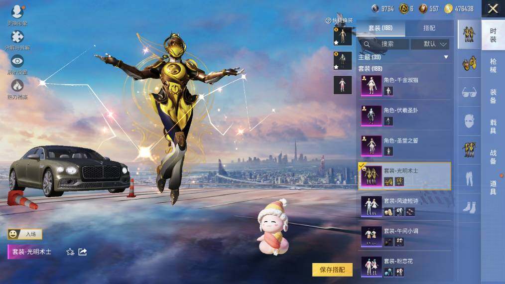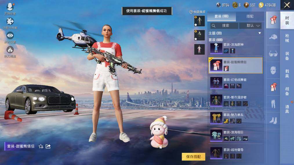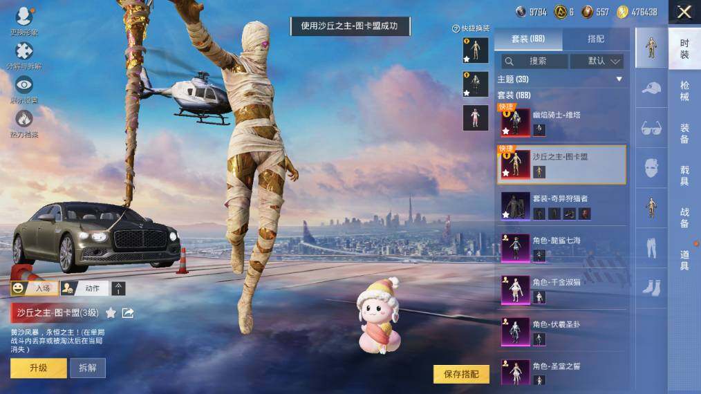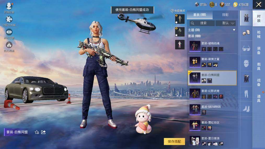 AKM-幽焰骑士,AUG-暖羊咩咩,P90-沙丘之主,Kar98K-巳巳如意,Kar98K-圣域龙灵,M24-镜域双华,DP-28-圣堂之誓