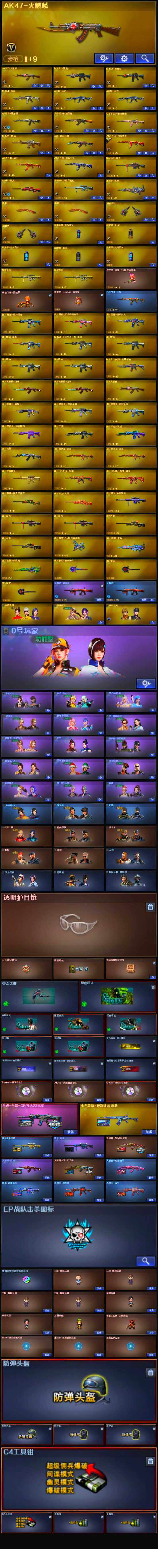 【英雄级武器】:高爆手雷-竞技荣光,烟雾弹-竞技荣光,闪光弹-竞技荣光,QBZ03-金色蔷薇,无影-神兵利器,M4A1-黑龙,M4A1-黑骑士,M4A1-死神,加特林-炼狱,AK47-火麒麟*2,AK12-天启*2,AN94-超新星,Barrett-毁灭,AWM-裁决,AK47-机械迷城,M4A1-猎神,AK47-B-常胜将军,M4A1-赤狱骑士,麒麟刺*2,屠龙*2