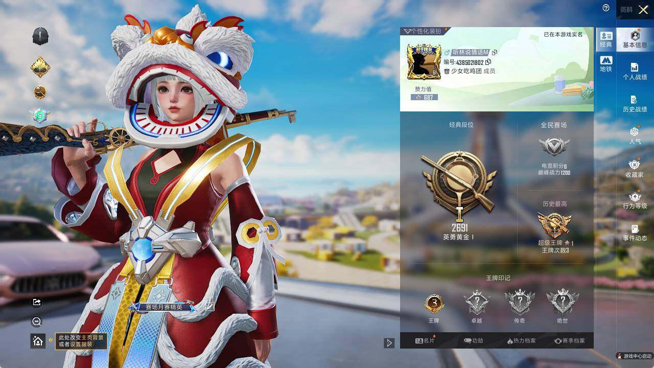 - PX_2099252-实名: 可修改 贵族等级: V6 英雄数: 63 皮肤数: 55 珍品传说: 器灵·落星盏 限定皮: 山海·碧波行,鸣野蒿,陌上桑,愿照·福禄聚