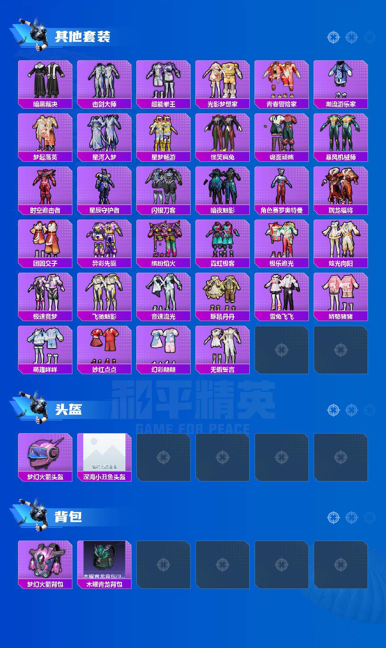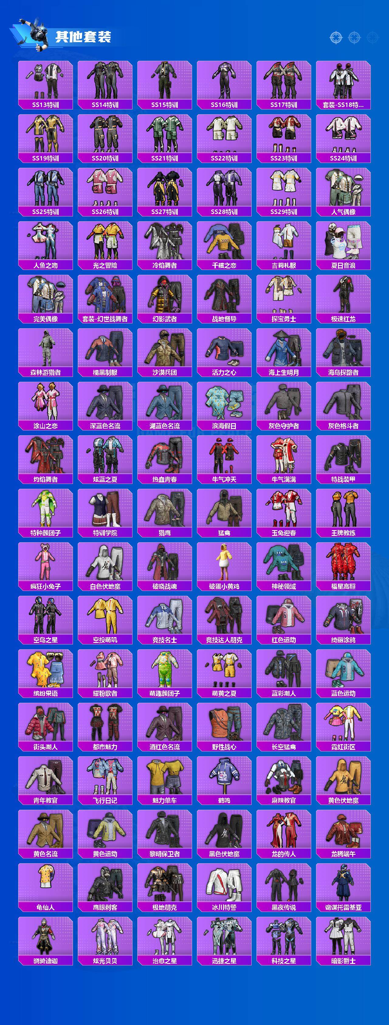 套装-龟仙人,套装-极速红龙,套装-破蛋小黄鸡,套装-梦起落英,套装-怪笑疯兔,套装-诡面顽熊,角色-赛罗奥特曼,套装-瑞龙福将,套装-团圆交子,套装-豚鼠丹丹