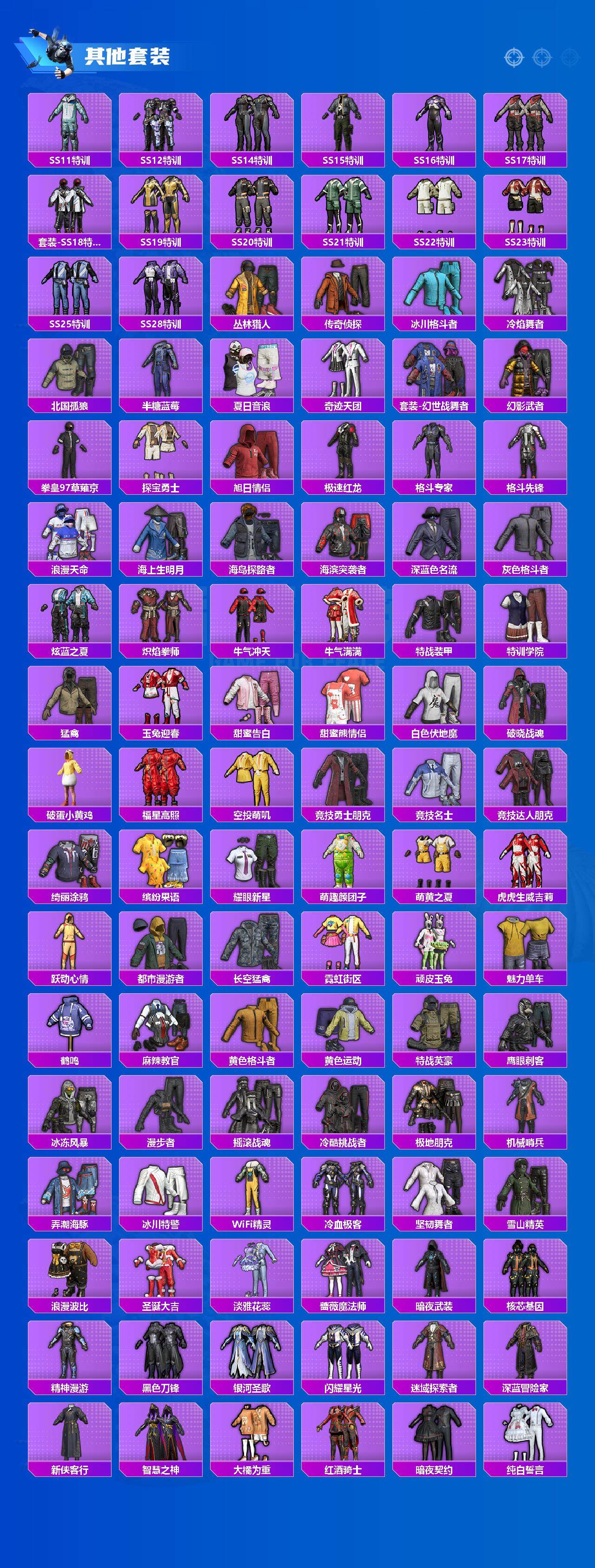 套装-浪漫天命,套装-极速红龙,套装-破蛋小黄鸡,套装-漫步者,套装-弄潮海豚,套装-雪山精英,套装-黑色刀锋,新侠客行套装,套装-暗夜契约,套装-纯白誓言,套装-玄武圣者,套装-瑞龙福将,套装-团圆交子