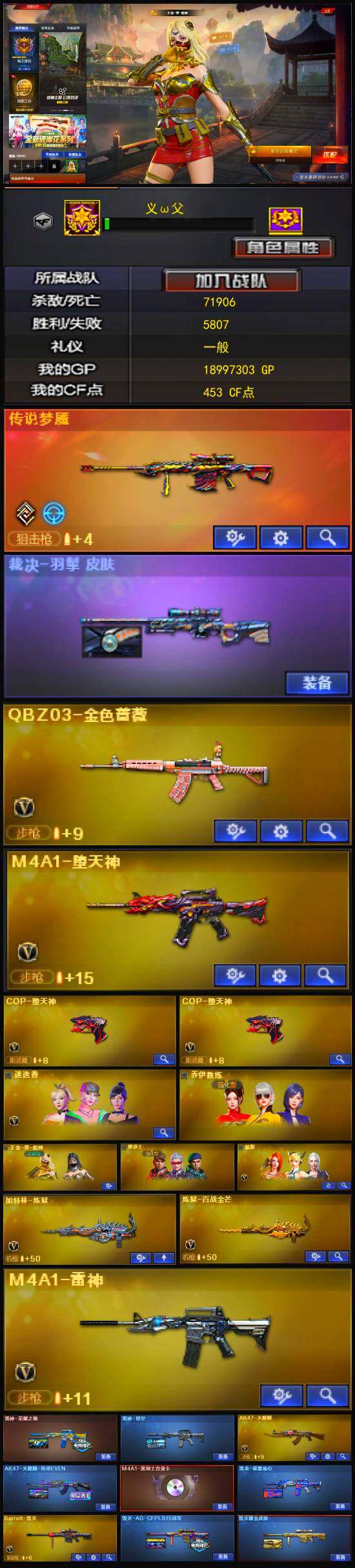 【热门武器】:传说梦魇,QBZ03-金色蔷薇,加特林-炼狱,COP-堕天神*2,沙鹰-修罗