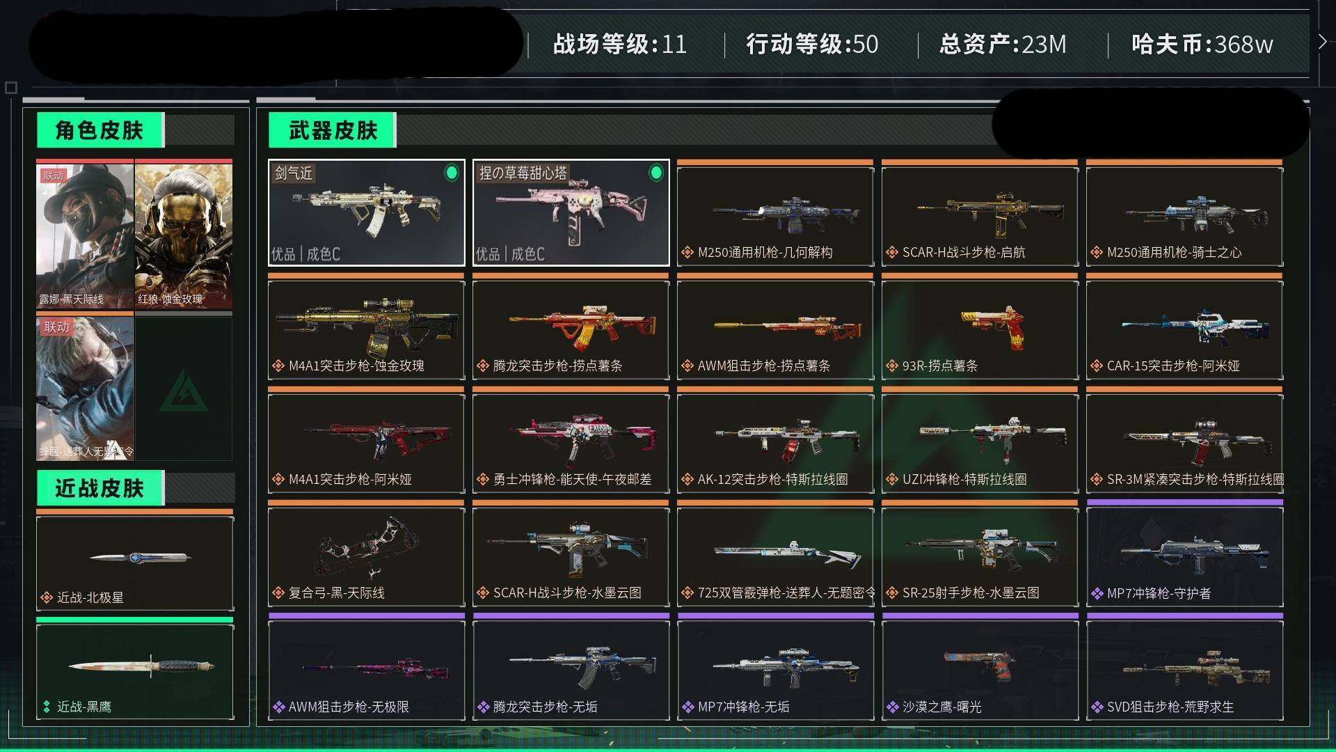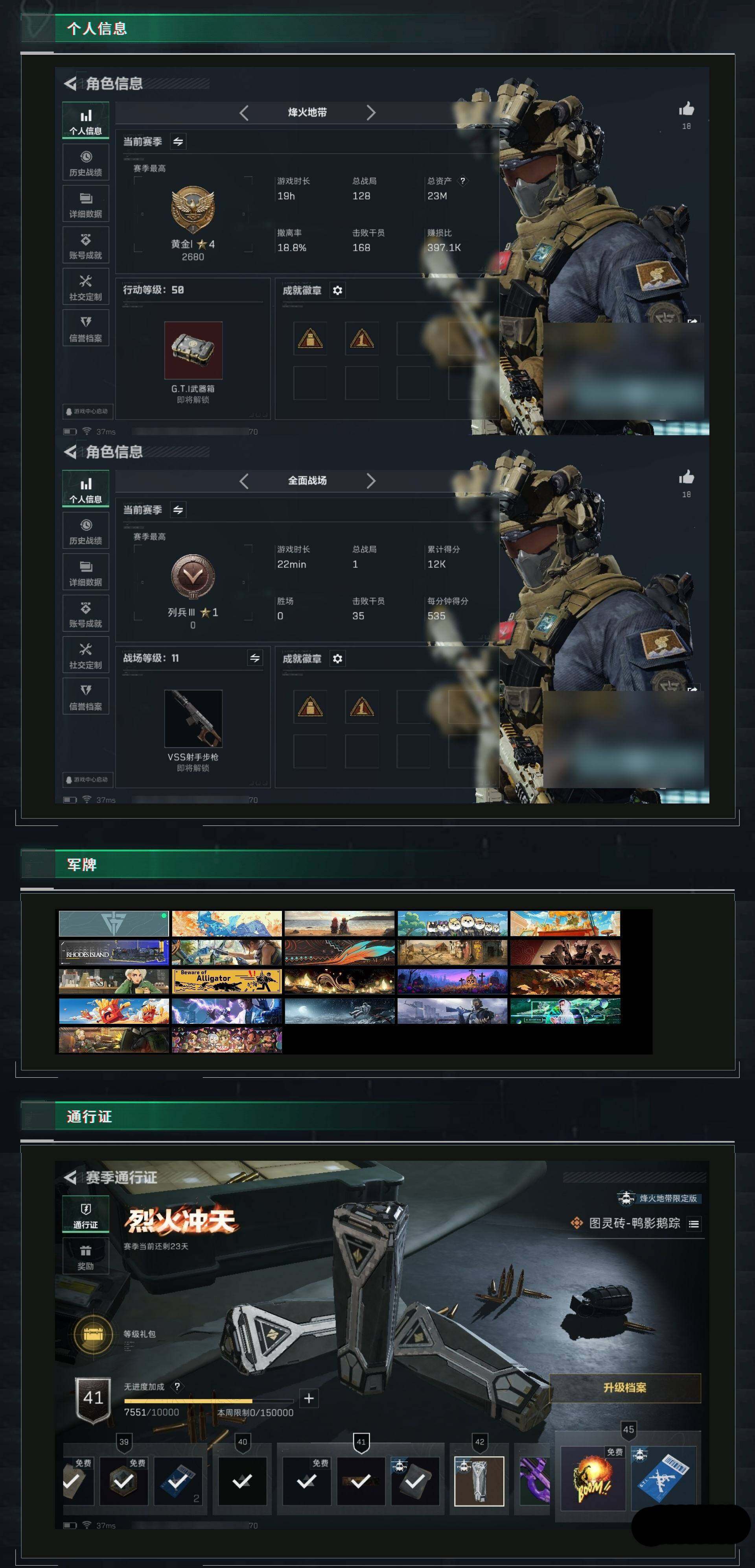 - [11298074]可二次 可修改实名 实名:可修改 高级安全箱(9.17到期) 烽火地带段位:钻石 全面战场段位:上等兵 总资产:161.4 哈夫币:8.024 传说武器皮肤:近战-黑海,SCAR-H战斗步枪-铁艺苍穹,AK-12突击步枪-夜鹰,SMG45冲锋枪-骑士,QJB201轻机枪-黑海,MP5冲锋枪-黑海,725双管霰弹枪-送葬人-无题密令,K437突击步枪-北极星,M4A1突击步枪-蚀金玫瑰