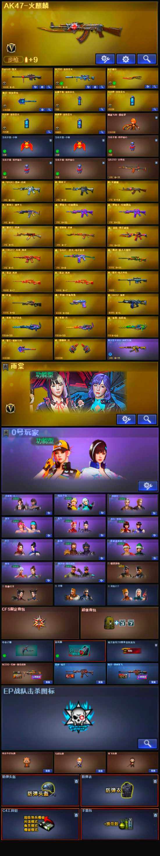【英雄级武器】:AK47-火麒麟,Barrett-毁灭,M200-竞技荣光,擎天-竞技荣光,炽芒蝶刃,高爆手雷-竞技荣光,闪光弹-竞技荣光*2,烟雾弹-竞技荣光