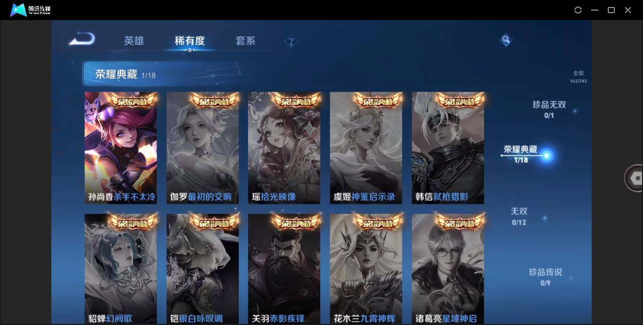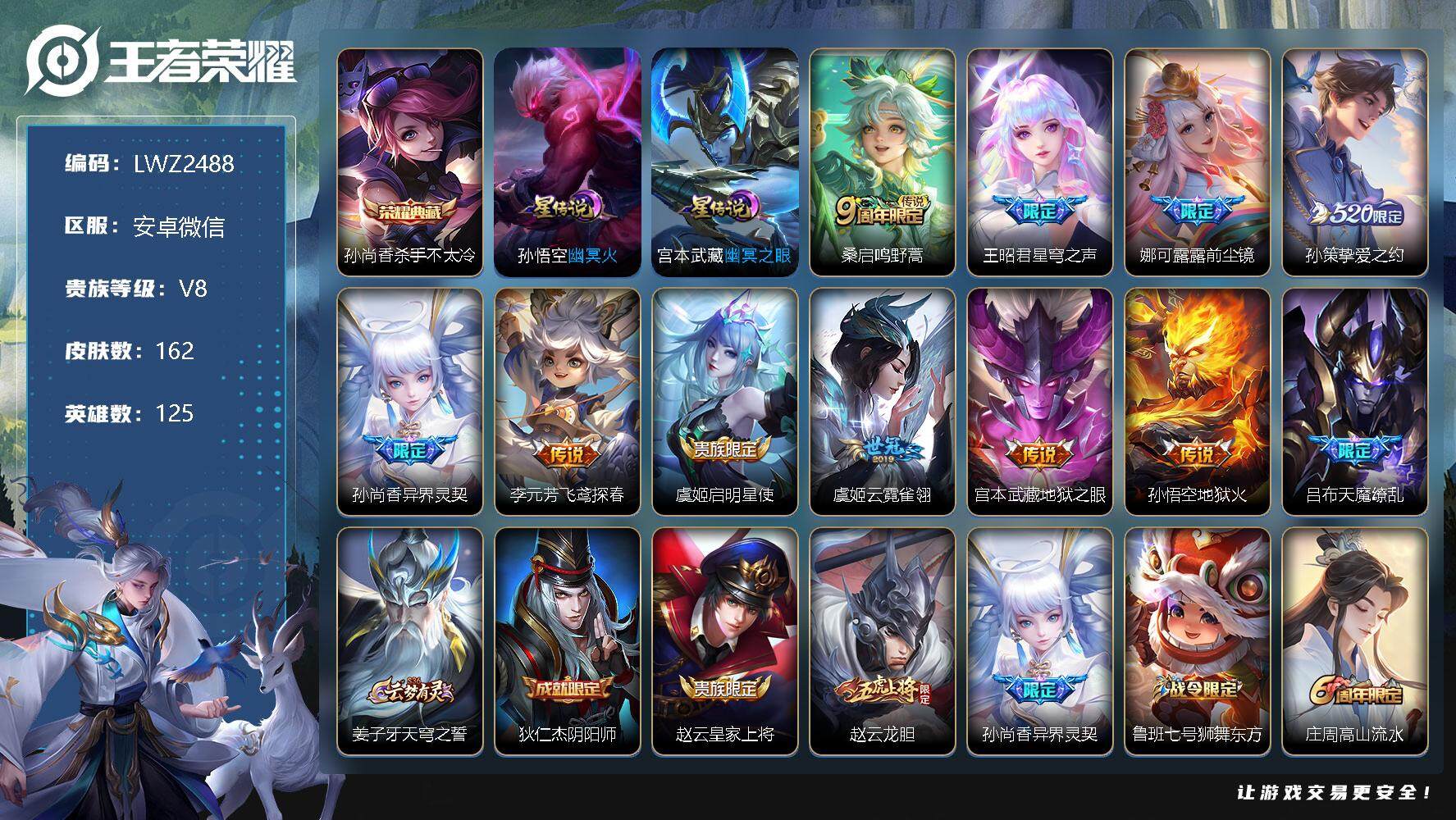 [12878623]安卓WX-V8-至尊星耀IV段位-125英雄-162皮肤-1典藏-11传说-48史诗