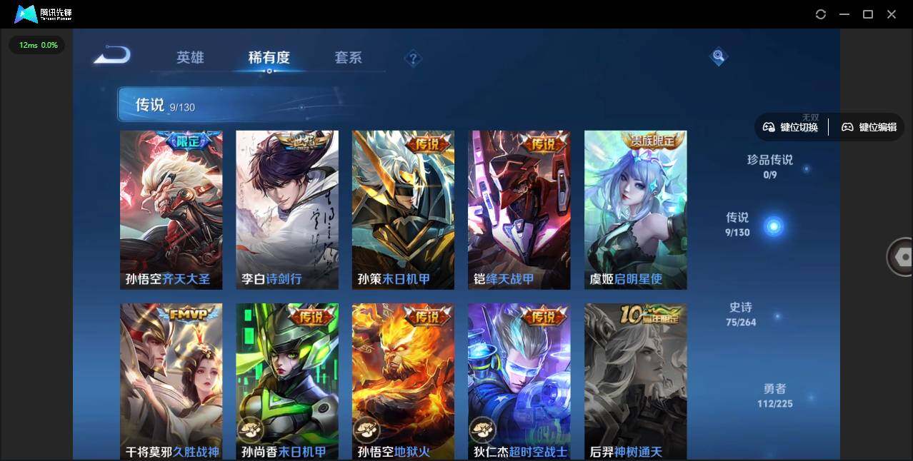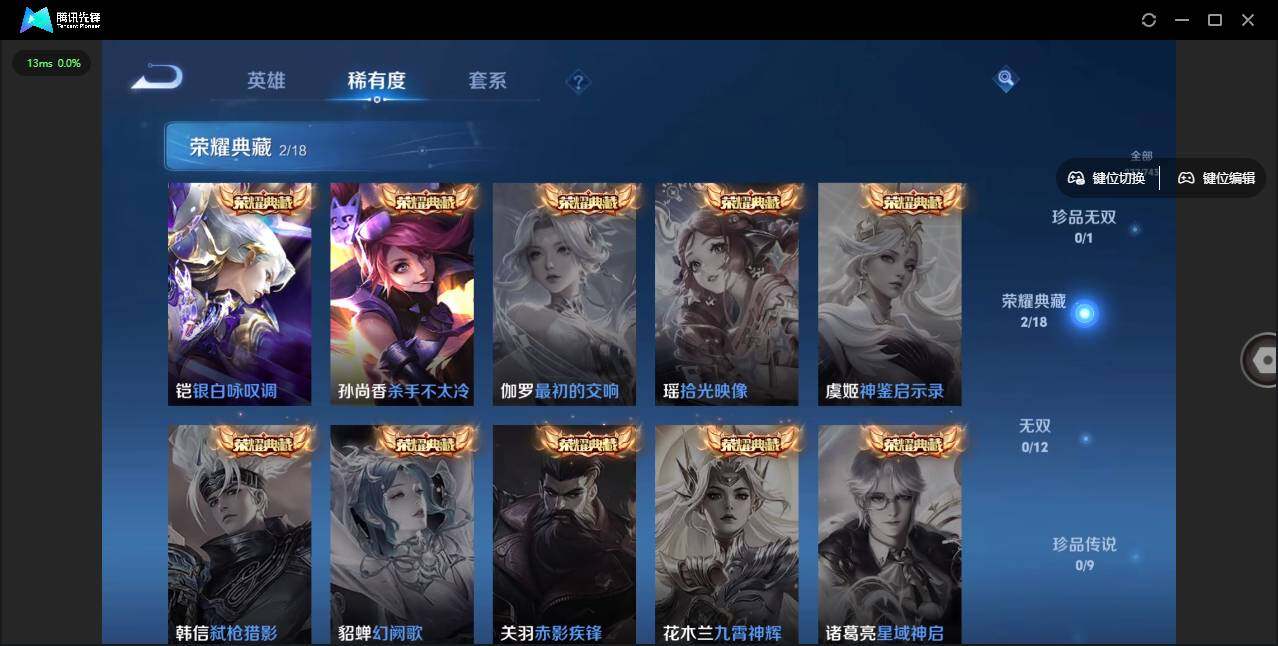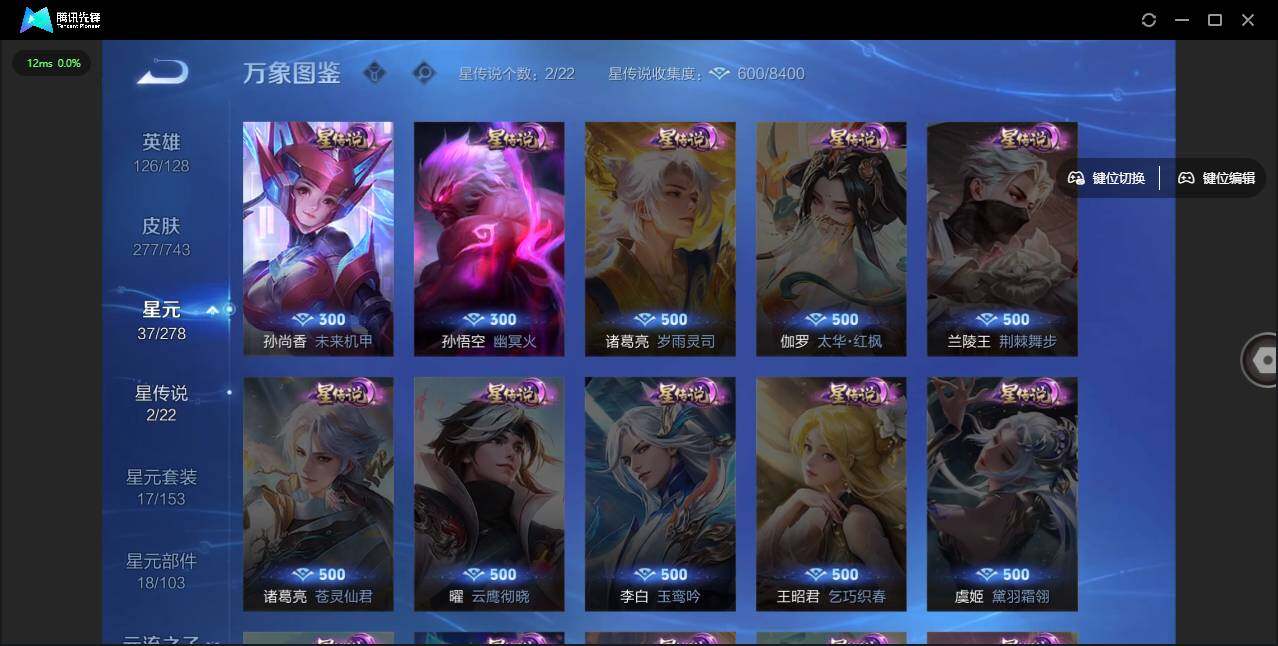- PX_2089800-13 安卓QQ/至尊星耀/393皮肤/125英雄/4典藏/0珍品无双/0无双/0珍品传说/46传说/120史诗/9稀有英雄 【4 典藏皮肤】鸣剑·曳影 李白,全息碎影 孙悟空,银白咏叹调 铠,弑枪猎影 韩信, 【46 传说皮肤】枫霜尽 橘右京,武圣 关羽,启明星使 虞姬,云霓雀翎 虞姬,前尘镜 娜可露露,逐花归海 澜,李逍遥 曜,地狱火 孙悟空,云鹰飞将 曜,齐天大圣 孙悟