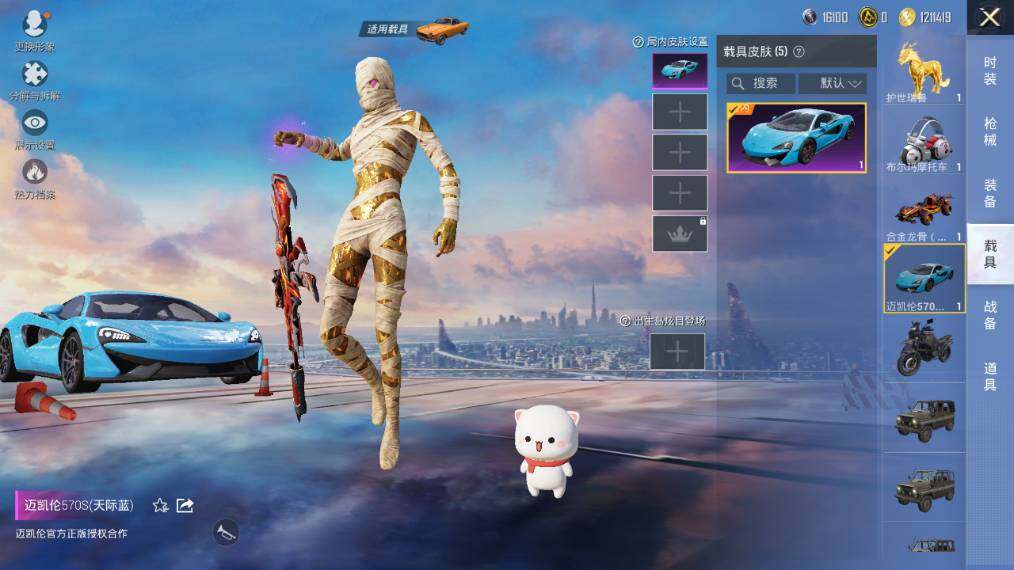 【粉色载具】:玛莎拉蒂Ghibli(蓝),迈凯伦570S(天际蓝),合金龙骨(红),布尔玛摩托车,护世瑞兽