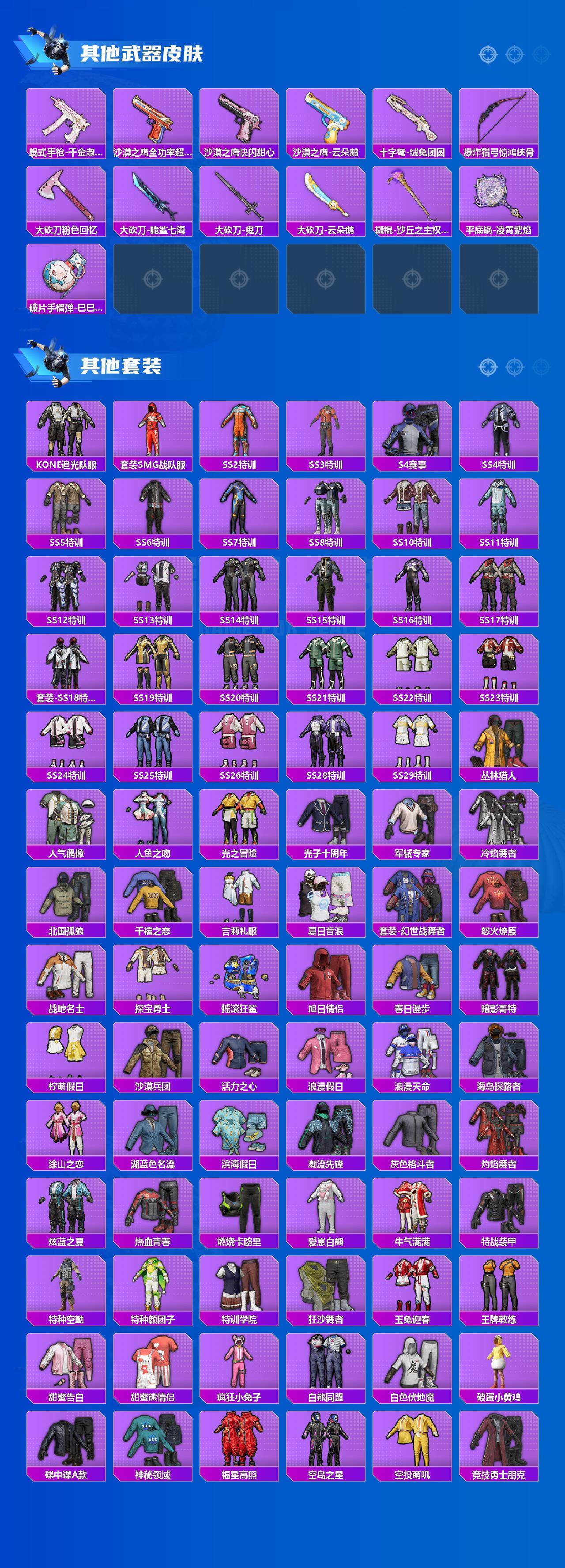 - PX_2108595-??包】YXc12520【可二次】【因赛季更新游戏段付以上号为准!】 苹果Q-4w热力值 12王牌印记 历史超级王牌15星 118套装 143枪皮 【2粉装】 蜜语绒猫 动力核心 【4特效枪】 SCAR-L-锦绣绵绵 (4级) AKM-炫紫旋律 (6级) Kar98K-巳巳如意 (5级) Mk14-甜梦熊击 (4级) 【1飞行器】月下星之子飞行器 【5热门】 龟仙人 鹰眼刺客