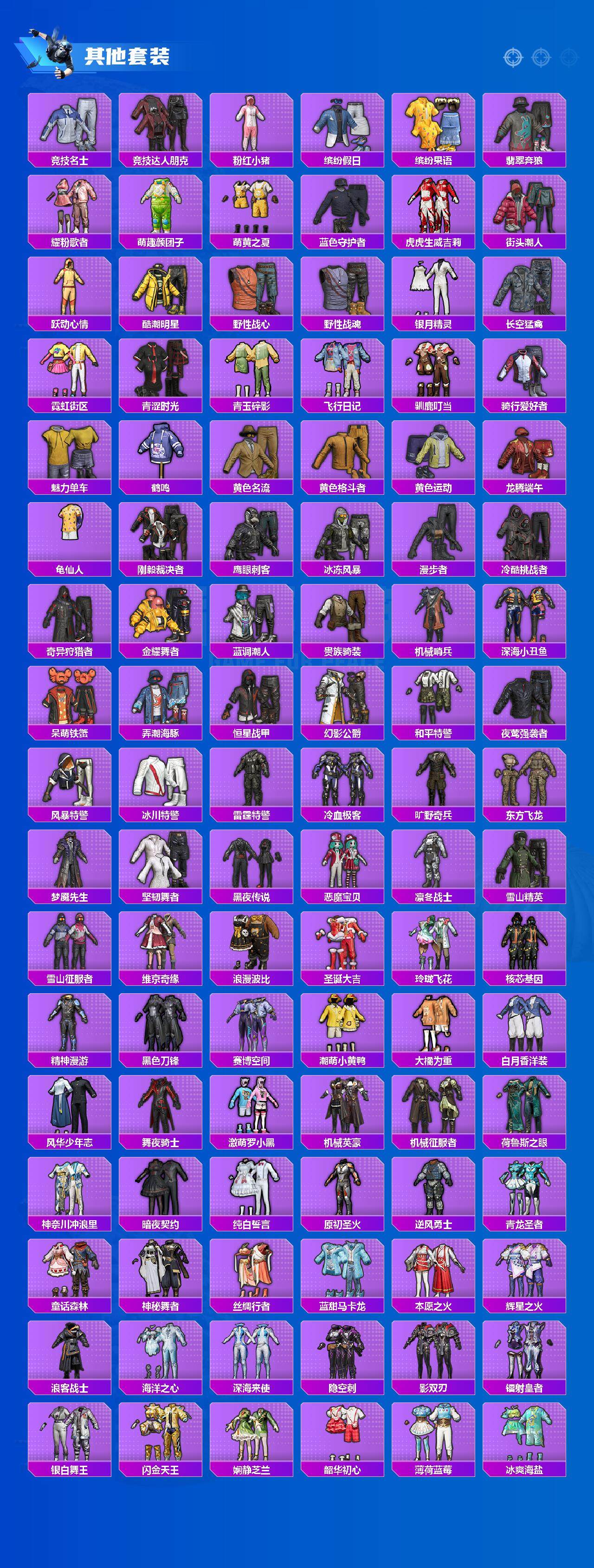 套装-浪漫天命,套装-龟仙人,套装-暗影哥特,套装-粉红小猪,套装-KONE追光队服,套装-狂沙舞者,套装-破蛋小黄鸡,套装-漫步者,套装-弄潮海豚,套装-雪山精英,套装-黑色刀锋,赛博空间套装,白月香洋装套装,风华少年志套装,套装-机械英豪,套装-暗夜契约,套装-纯白誓言,套装-青龙圣者,套装-童话森林,套装-蓝甜马卡龙,海洋之心套装,套装-影双刃,套装-娴静芝兰,套装-韶华初心,薄荷蓝莓套装,套装-冰爽海盐,套装-梦起落英,套装-诡面顽熊,套装-醒狮腾龙,套装-瑞龙福将,套装-团圆交子