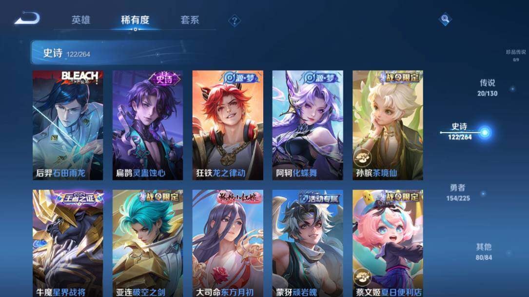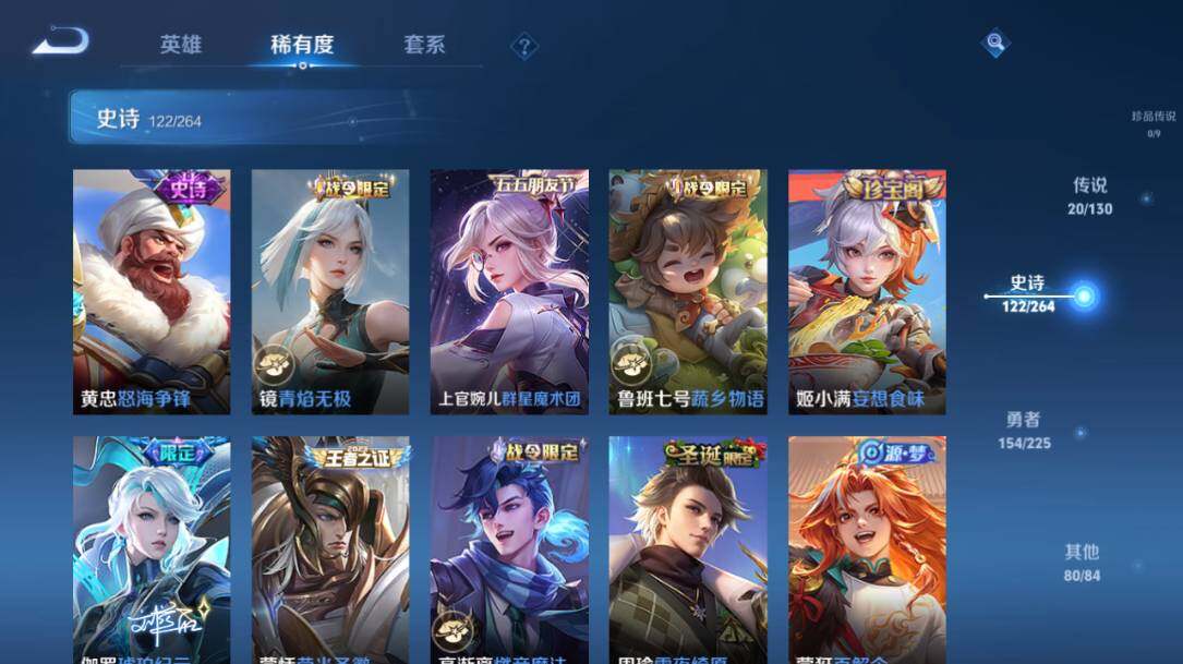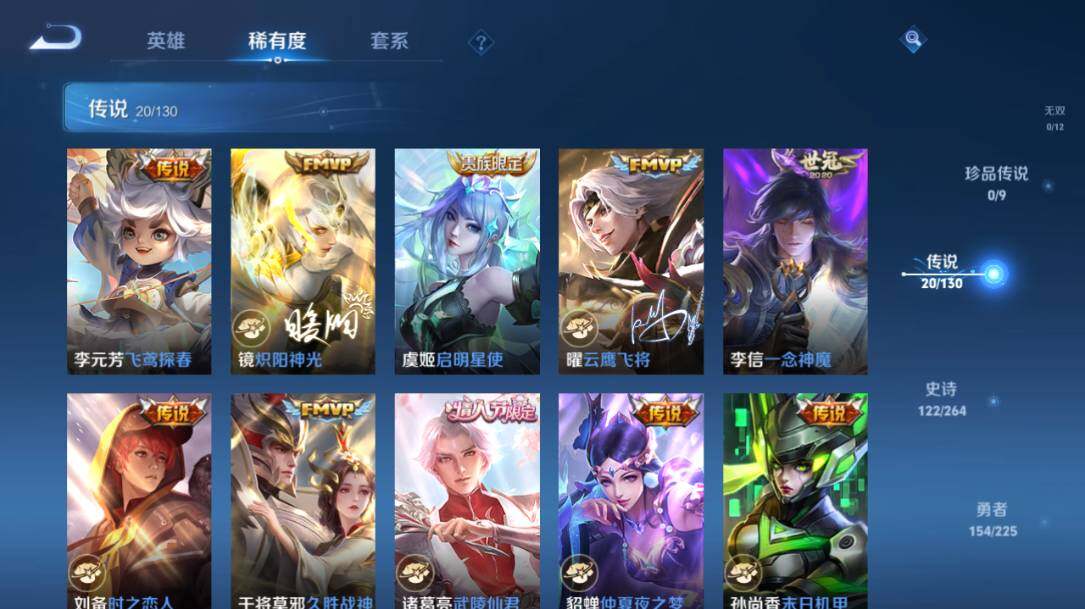 - PX_2108068-Q/至尊星耀/192皮肤/125英雄/0典藏/0珍品无双/0无双/1珍品传说/9传说/38史诗/9稀有英雄 【1 珍品传说】怪盗基德 马可波罗, 【9 传说皮肤】胖达荣荣 梦奇,逐花归海 澜,鹤羽星尊 诸葛亮,怒海麟威 吕布,黄金狮子座 达摩,一念神魔 李信,妄想实况 马可波罗,愿照·九州拓 澜,鸣野蒿 桑启, 【38 史诗皮肤】末日机甲 吕布,德古拉伯爵 刘邦,无心 元歌,