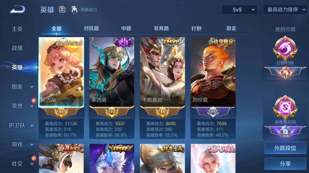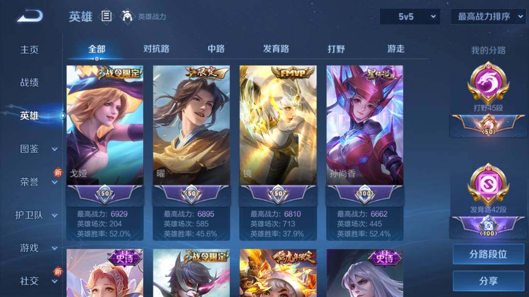 [12879138]打野45段!发育路42段!苹果WX-V9-至尊星耀II段位-125英雄-378皮肤-2典藏-0珍品无双-0无双-0珍品传说-20传说-122史诗