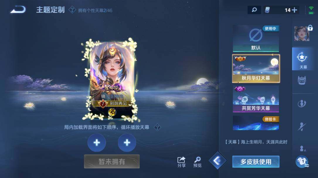 干将莫邪久胜战神,曜云鹰飞将,镜炽阳神光,西施游龙清影,李信一念神魔,赵云淬星耀世,刘备时之恋人,李元芳飞鸢探春,曜李逍遥,澜逐花归海,孙尚香乘龙·问璇玑,海月金乌负日,云中君群星魔术团