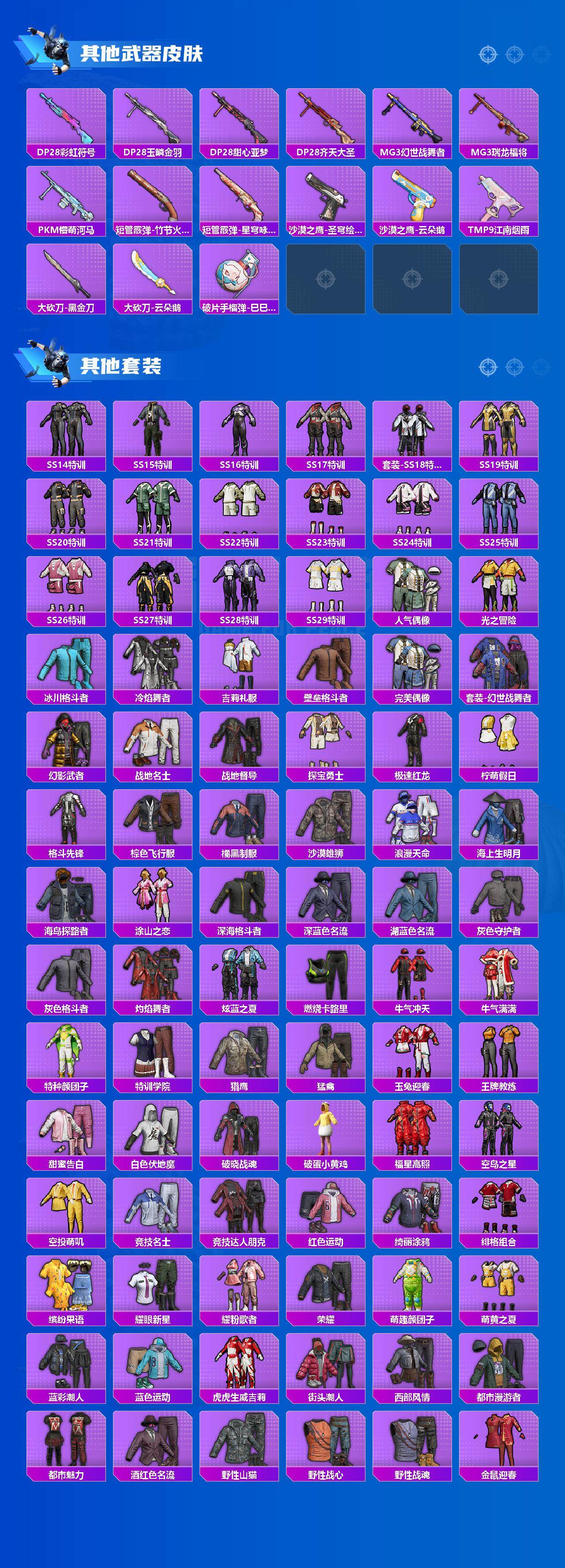 - PX_2096284- 苹果手Q-26王牌印记-16粉装-3特效枪-2载具-热力值-287套装-308枪皮-1卓越印记-0传奇印记 【16粉装】,梦幻火箭,宝贝奶油派,缤纷油彩,放客神游,童趣迷兔,第五大道,极致幻想,甜蜜誓约,流星咚咚,深海曼妙,馨动时刻,樱桃泡泡,炙焰红王,山涧鹿灵,纯珍童话,星之彼岸 【3特效枪】AKM-炫紫旋律-7级 M416-心之恋语-7级 Kar98K-巳巳如意-5级