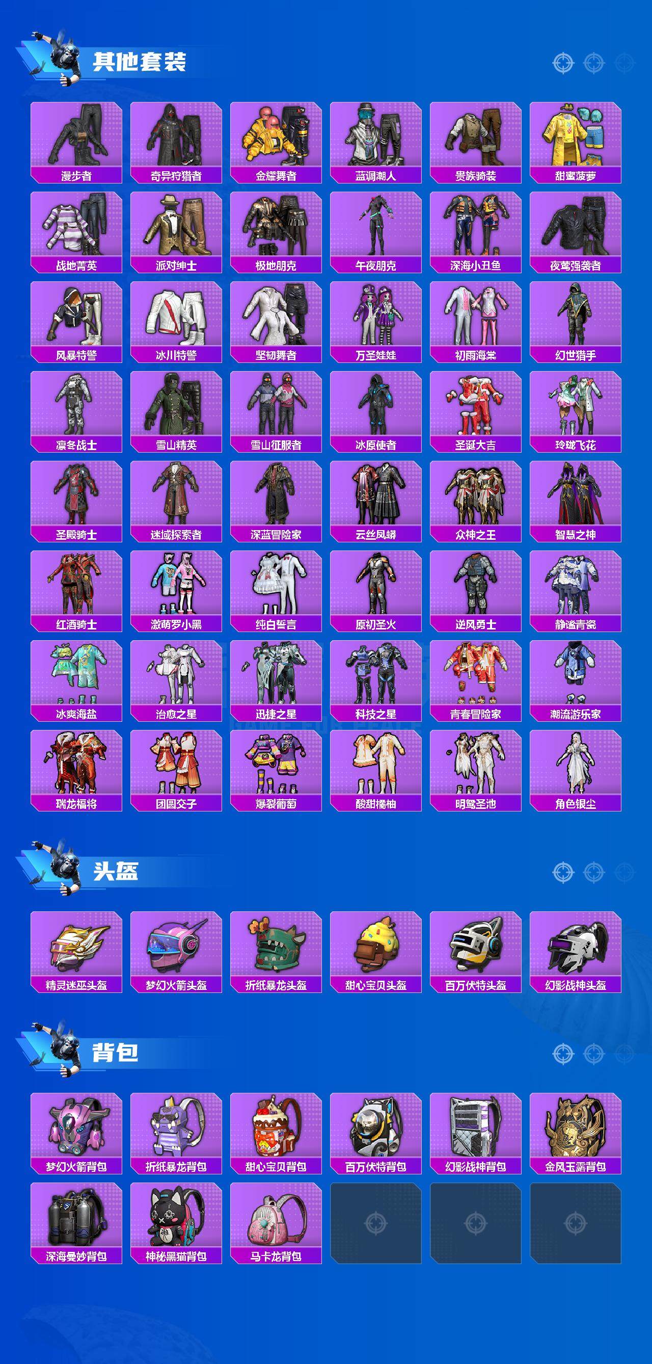 套装-浪漫天命,忍者信条套装,套装-粉红小猪,套装-狂沙舞者,套装-漫步者,套装-雪山精英,套装-纯白誓言,套装-静谧青瓷,套装-冰爽海盐,套装-瑞龙福将,套装-团圆交子