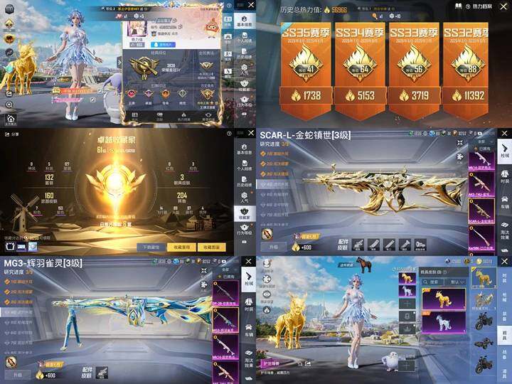 【粉色枪皮】:SCAR-L-金蛇镇世,GROZA-镜光银凌,AKS-74U-星穹咏叹调,Kar98K-巳巳如意,Mk14-甜梦熊击,DP-28-豹影疾电,MG3-辉羽雀灵
