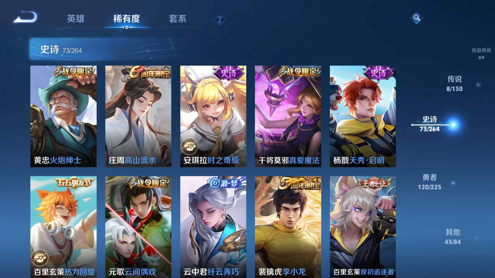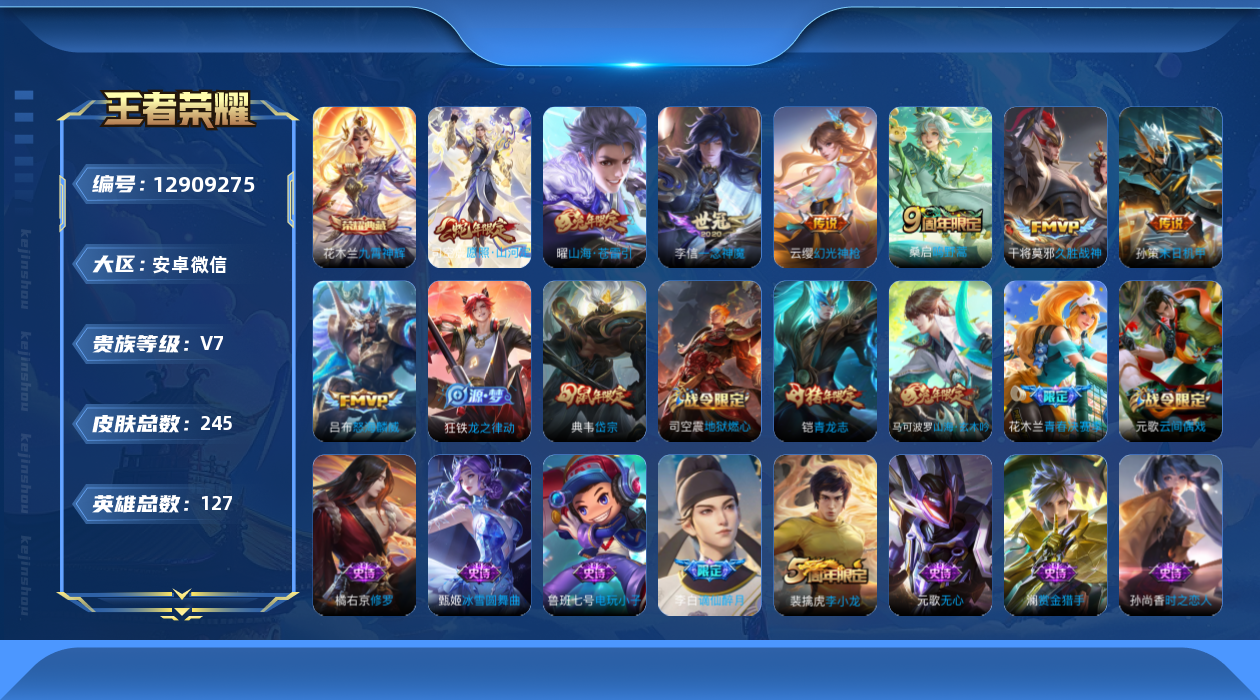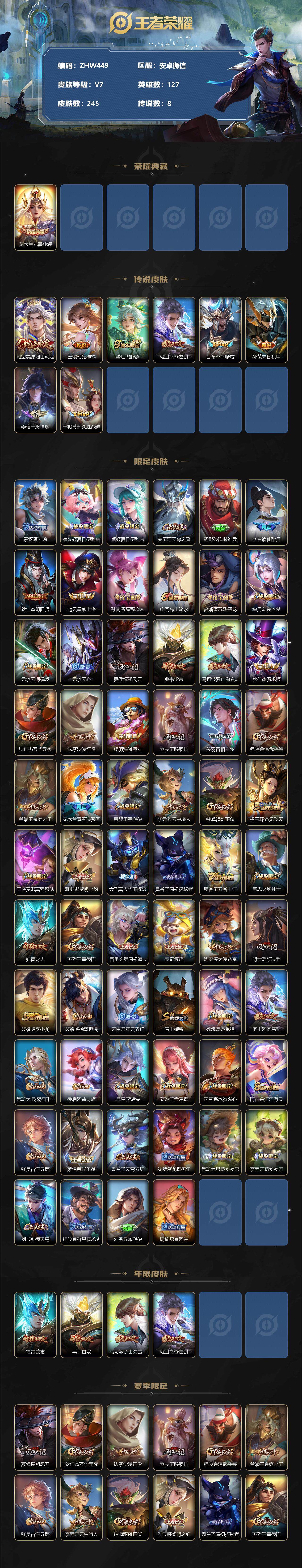 [12909275]安卓WX-V7-永恒钻石V段位-127英雄-245皮肤-1典藏-0珍品无双-0无双-0珍品传说-8传说-73史诗