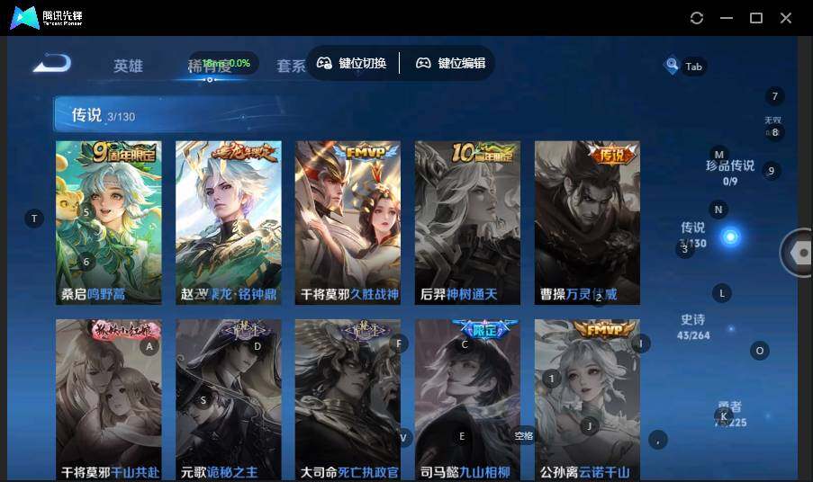 - [12223959]V8 1典藏 18传说 125英雄 349皮肤 可修改实名 优质装备:鸣剑·曳影,黄金狮子座,黄金射手座,炽阳神光,末日机甲-孙尚香(绿蚂蚱),地狱火,仲夏夜之梦(大飞蛾),胖达荣荣,时之恋人-刘备(电焊工),无双飞将,霜月吟,涂山容容 传说皮:幻光神枪 珍宝阁皮:妄想食味,胡桃夹子,女武神 限定皮:愿照·九州拓(澜年限),愿照·山河定(司空震年限),至尊宝,白虎志(电光耗子),武陵仙君(小桃花),白晶晶,时雨天司(水龙头),神威(电光马子),山海·碧波行(瑶年限),高山流水,怒海麟威,五谷丰年,梁祝,御风骁将(吕布年限),天狼狩猎者,龙胆,烈魂,天狼溯光者,李小龙,逐梦之影,朱雀志(守约年限),大圣娶亲,寅虎·心曲(虎婆),玉兔公主,山海·玄木吟(马可年限) 史诗皮:器灵·浮梦炉,星界战将,龙之律动,石田雨龙,百相守梦-周瑜,怒海争锋,蔬乡物语(鲁班七号),百相守梦-百里守约,百相守梦-黄忠,紫霞仙子,苍穹之光,白龙吟,特工魅影,千年之狐,永昼,江河有灵,魅语,百解令(蒙犽),高渐离燃音魔法,蒙恬荣光圣徽,匿光破解者,冰冠公主,偶像歌手,晚萤,电玩·爆裂旋风,猫狗日记-孙策,乱世虎臣,节奏热浪,修罗,女仆咖啡,摇滚巨星,水果甜心,天才门将,星夜王子,心灵骇客,功夫厨神,德古拉伯爵,暗隐猎兽者,幽灵船长,鬼剑武藏,地狱岩魂,纤云弄巧,繁星吟游(呼啦呼啦),拒霜思,缤纷独角兽,乘风破浪,逐浪之夏,水晶猎龙者,曙光守护者,箭羽风息,金属风暴,原初追逐者,圣诞狂欢,圣诞恋歌,鹰眼统帅,魅力维加斯,黎明之约,赏金猎手,未来纪元-赵云