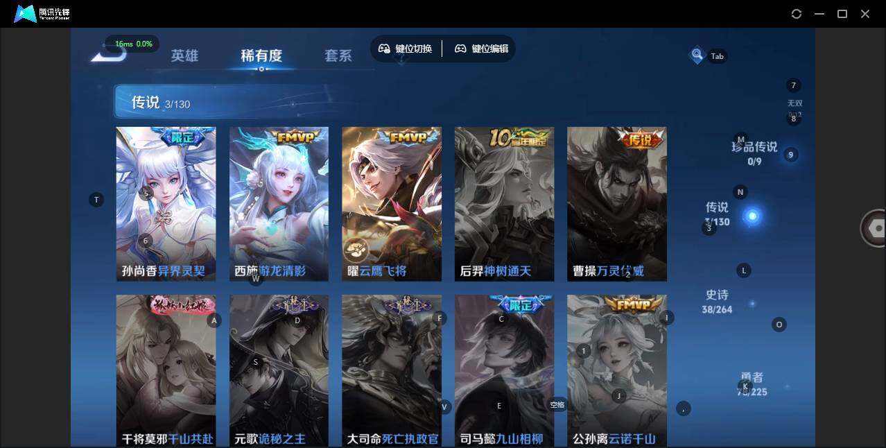 - [12323244]V2 1典藏 3传说 126英雄 157皮肤 可修改实名 优质装备:赤影疾锋,久胜战神 传说皮:幻光神枪 珍宝阁皮:妄想食味 限定皮:鸣野蒿,游园惊梦 史诗皮:蒙犽顽岩魄,百相守梦-黄忠,紫霞仙子,江河有灵,冰冠公主,电玩·爆裂旋风,末日机甲-吕布,时之恋人-孙尚香,乱世虎臣,女仆咖啡,摇滚巨星,水果甜心,星夜王子,心灵骇客,鬼剑武藏,舞动绿茵,地狱岩魂,逐浪之夏,曙光守护者,金属风暴,鹰眼统帅,暗夜贵公子