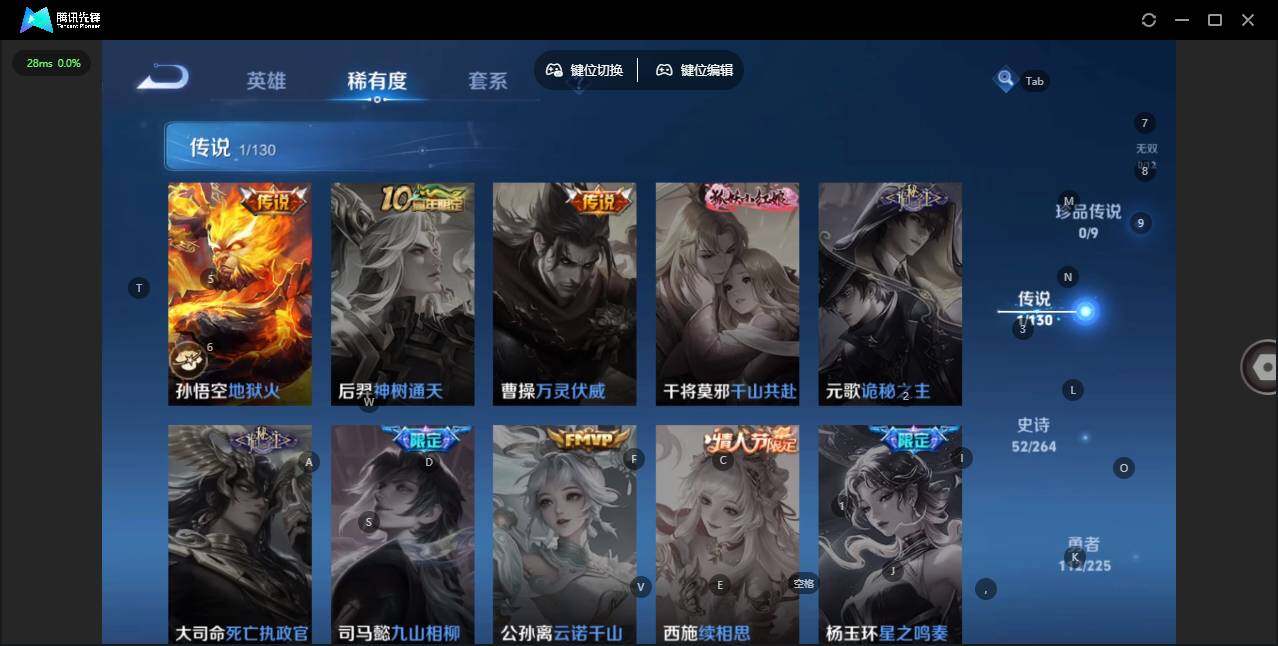 - [11606773]V7 1典藏 8传说 124英雄 268皮肤 可修改实名 优质装备:鸣剑·曳影,猫影幻舞,炽阳神光,地狱火,仲夏夜之梦(大飞蛾) 珍宝阁皮:女武神 限定皮:至尊宝,白虎志(电光耗子),凤求凰(白切鸡),太华(伽罗年限),梅西,武陵仙君(小桃花),时之彼端,神威(电光马子),飞衡(韩信年限),五谷丰年,冰锋战神,梁祝,天狼狩猎者,逐梦之翼,逐梦之星,天狼征服者,天狼绘梦者,逐梦之影,逐梦之光,辉光之辰,一生所爱,大圣娶亲,引擎之心,青春决赛季,冰霜恋舞曲,云端筑梦师,神奇女侠,美猴王 史诗皮:器灵·浮梦炉,化蝶舞,龙之律动,茶境仙,百相守梦-黄忠,紫霞仙子,电玩小子(小书包),白龙吟,黄金分割率,特工魅影,千年之狐,电玩·爆裂旋风,晚萤,末日机甲-吕布,猫狗日记-孙策,节奏热浪,水果甜心,天才门将,星夜王子,心灵骇客,功夫厨神,德古拉伯爵,暗隐猎兽者,幽灵船长,鬼剑武藏,心灵战警,乐园奇幻夜,舞动绿茵,地狱岩魂,繁星吟游(呼啦呼啦),缤纷独角兽,乘风破浪,逐浪之夏,水晶猎龙者,曙光守护者,箭羽风息,金属风暴,原初追逐者,圣诞狂欢,圣诞恋歌,鹰眼统帅,暗夜贵公子,魅力维加斯,黎明之约,赏金猎手,无心,未来纪元-赵云