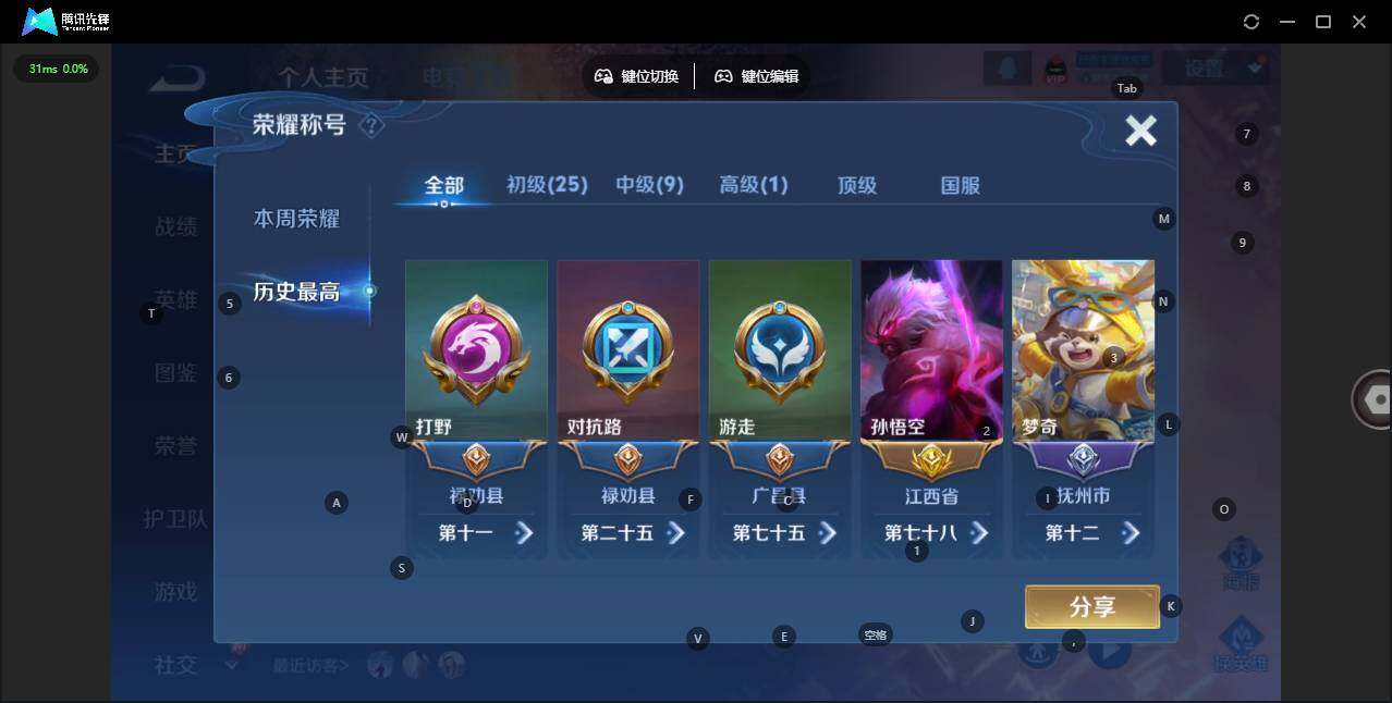 - PX_2017705-实名: 可修改 贵族等级: V7 英雄数: 121 皮肤数: 238 荣耀水晶: 拾光映像 传说皮: 黄金狮子座,仲夏夜之梦,游龙清影,挚爱花嫁,山海·苍雷引,澜逐花归海,乘龙·铭钟鼎,幻光神枪 限定皮: 遇见飞天,李小龙,游园惊梦,梁祝,时雨天司,引擎之心,辉光之辰,异界灵契,岱宗,天狼溯光者,神威,蜜橘之夏,逐梦之音,青春决赛季,凤求凰,美猴王,凤凰于飞,高山流水,孙行者