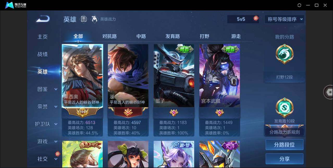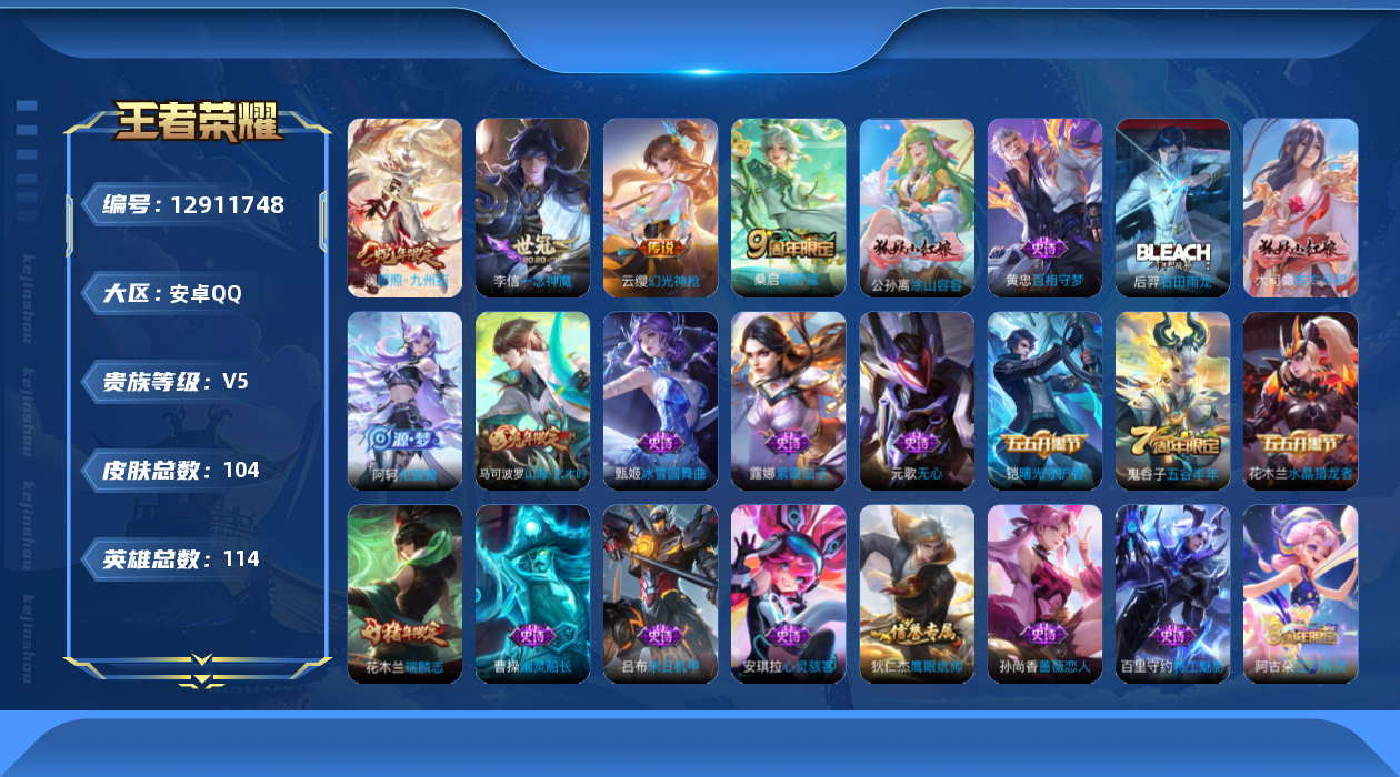 [12911748]安卓Q-V5-至尊星耀V段位-114英雄-104皮肤-4传说-29史诗