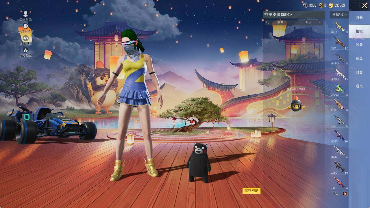 AKM-甜心宝贝,AKM-星际浪客,SCAR-L-甜梦小狐,SCAR-L-纯梦嫁纱,M416-暖熊萌萌,GROZA-香水柠檬,P90-甜蜜草莓,Kar98K-巳巳如意,AMR-鸢尾晶梦,平底锅-林间仙鹿,平底锅-仲夏莫吉托