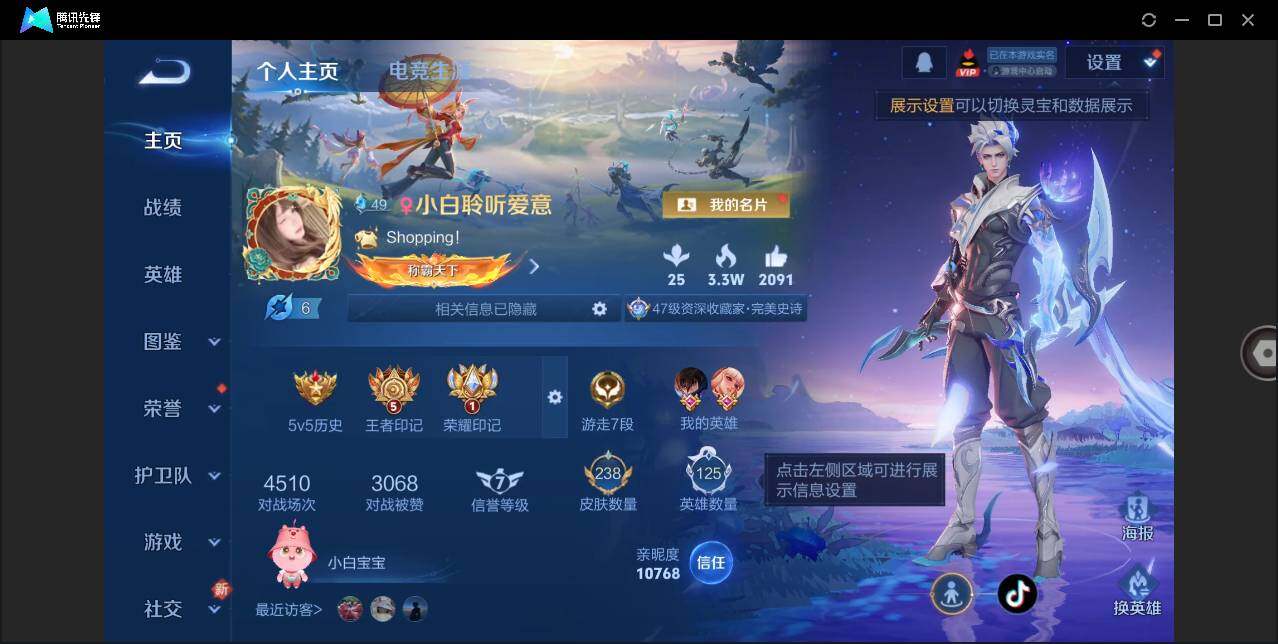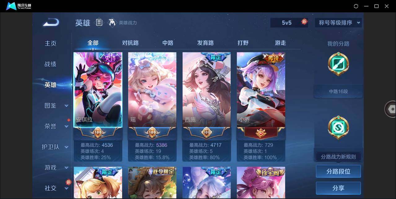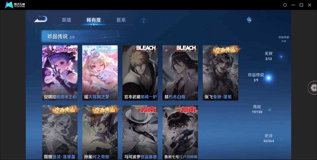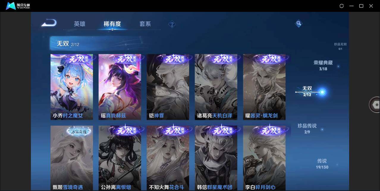 [12911694]安卓Q-V10-最强王者段位-125英雄-238皮肤-3典藏-2无双-2珍品传说-19传说-50史诗