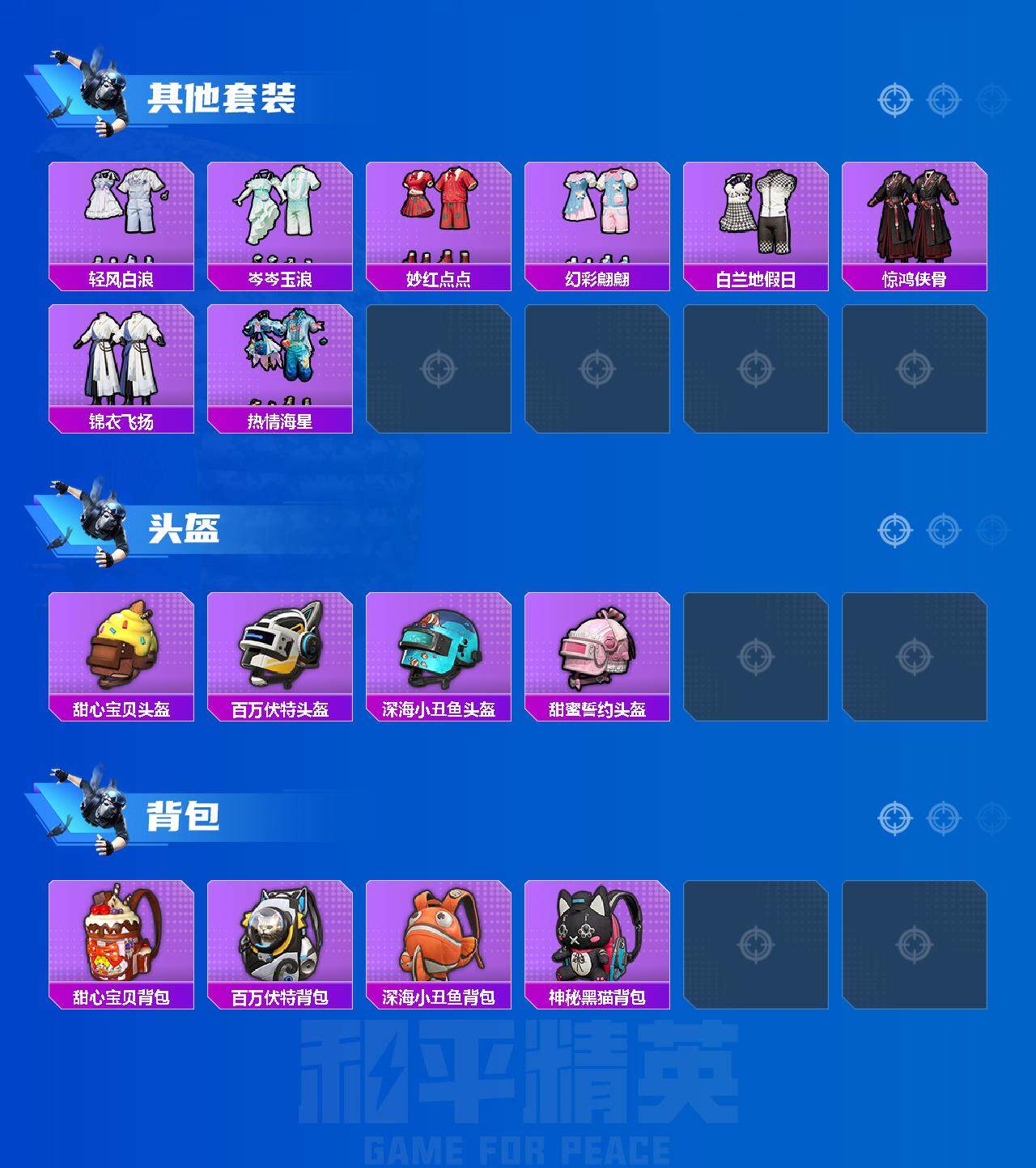 [12916295]安卓 手Q-13粉装-4特效枪-4载具-6粉色飞行器-69873热力值-8王牌印记-138套装-170枪皮 【热门品类】:粉装-童趣迷兔,套装-浪漫天命,套装-都市猎人,套装-小丑鱼,套装-胖达团团,套装-金羽特工,套装-星河浪客,套装-动感兔斯基人偶服,套装-龟仙人,套装-浪漫波比,套装-粉红小猪 【粉色载具】:路特斯ELETRE(花绽灰),玛莎拉蒂Ghibli(粉),海龙奔腾,双人摩托-双刃魅影(绿) 【粉色套装】:粉装-放客神游,粉装-天禅智恒,粉装-冰霜白皇,粉装-童趣迷兔,粉装-炙焰红王,粉装-王牌四分卫,粉装-显圣真君,粉装-沙场疾风,粉装-吟月归客,粉装-黄伞悠悠,粉装-酣梦娃娃,粉装-暗星紫秘,粉装-天之羽翼 【粉色枪皮等级】:AKM-梦之光华(七级),SCAR-L-机甲封神(七级),Kar98K-巳巳如意(三级),VSS-烈焰拳霸(六级) 【粉色枪皮】:AKM-梦之光华,SCAR-L-机甲封神,Kar98K-巳巳如意,VSS-烈焰拳霸 【粉色飞行器】:梦幻火箭飞行器,童趣迷兔飞行器,齐天大圣飞行器,天之羽翼飞行器,星夜魔法师飞行翼,太空嘟嘟飞行器 【粉色降落伞】:百万伏特降落伞,春暖花开降落伞,神秘黑猫降落伞,童趣迷兔降落伞,梦之光华降落伞,暗夜玫瑰降落伞,林间仙鹿降落伞,齐天大圣降落伞,风花雪月降落伞,海渊国主降落伞,蓝莓炮弹降落伞,甜心娃娃降落伞,暗星紫秘降落伞,天之羽翼降落伞,庄周梦蝶降落伞,闪光银龙降落伞,旋转彩虹降落伞,仲夏莫吉托降落伞,临安公主降落伞 【稀有套装】:套装-龟仙人,角色-风玲 【稀有枪皮】:AKM-彩虹符号,AKM-影袭,AKM-破晓战魂,AKM-萌趣颜团子,AKM-虎虎生威,AKM-龙的传人,M16A4-幻世战舞者,M16A4-快乐主宰,M16A4-甜心亚梦,SCAR-L-炫彩节奏,SCAR-L-玉兔迎春,SCAR-L-红色方程式,SCAR-L-银碳小老虎,M416-动感兔斯基,M416-神秘黑猫,M416-糯团青竹,M416-蓝色火焰,GROZA-异彩先驱,GROZA-彩虹符号,GROZA-影袭,GROZA-恐龙拽拽,GROZA-春暖花开,GROZA-田园牧歌,GROZA-蓝莓炮弹,AUG-天降萌叽,AUG-灵符少年,AUG-青春冒险家,QBZ-彩虹符号,QBZ-电玩视界,QBZ-神秘黑猫,QBZ-飞驰魅影,M762