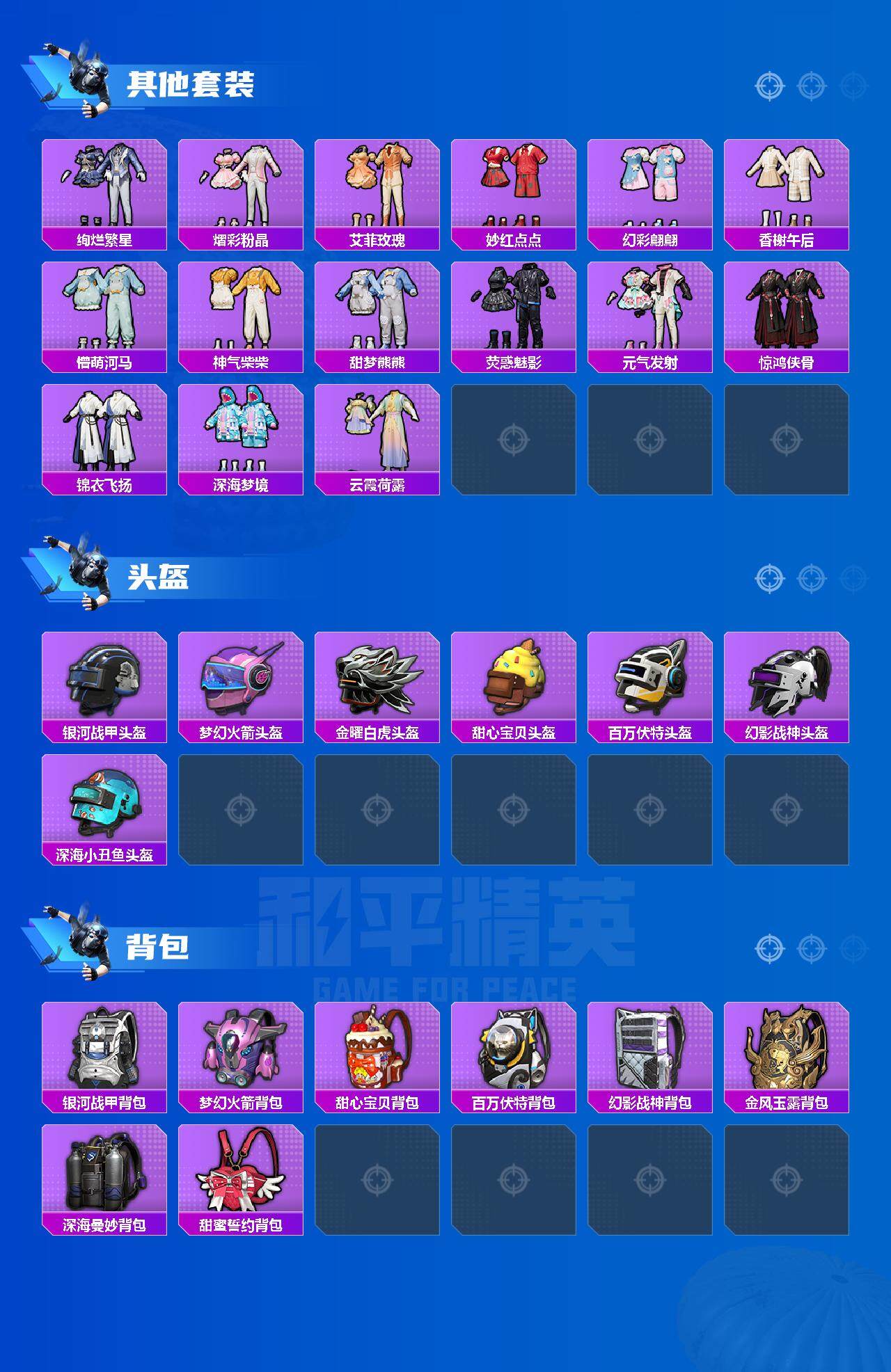 套装-寒光使者,套装-天使彩虹糖,套装-银河战甲,套装-未来战士,套装-宝贝奶油派,套装-快乐主宰,套装-音爆索尼克,套装-朗月武圣,套装-蓝莓炮弹,套装-傲雪凌霜,角色-宙之时溯,角色-小可学妹,角色-茉莉星,套装-拂晓神骑,套装-飓风飞鹰,套装-香水柠檬,岚岚物语套装,角色-蔷薇星