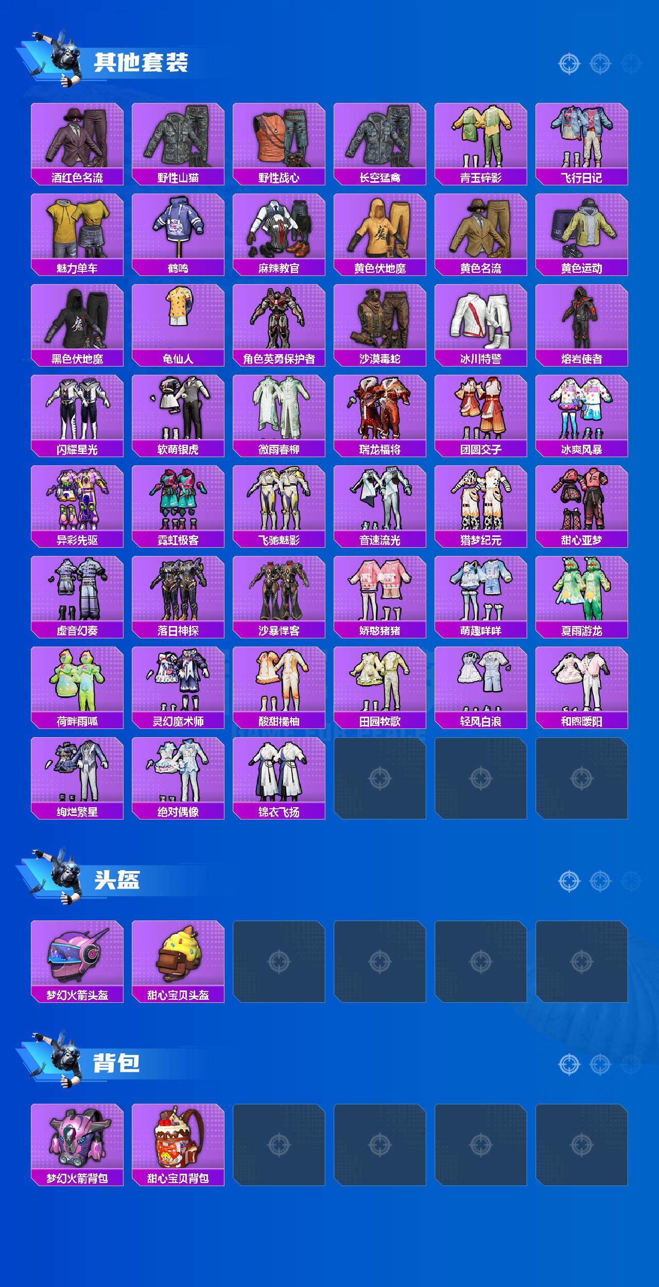 【粉色套装】:粉装-甜心巧克力,粉装-宝贝奶油派,粉装-天使彩虹糖,粉装-梦幻火箭,粉装-冰霜白皇,粉装-童趣迷兔,粉装-炙焰红王,粉装-相思残雪,粉装-花影阑珊,粉装-海盐物语,粉装-荒漠赏金,角色-复仇流浪者,粉装-傲雪凌霜,粉装-霁雪冰心,粉装-垂柳戏鸭,粉装-灵感创作师,角色-歌者泠鸢,粉装-仲夏莫吉托