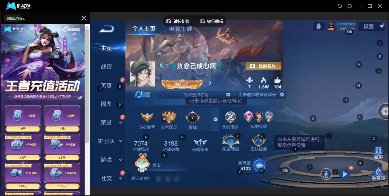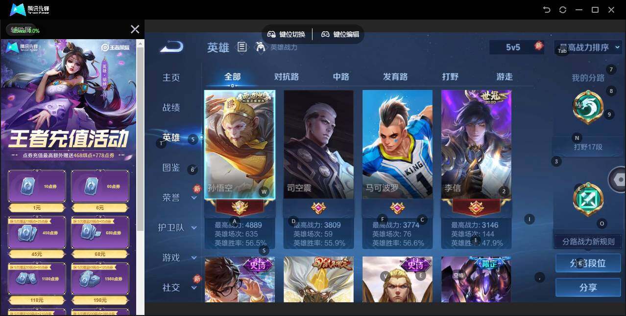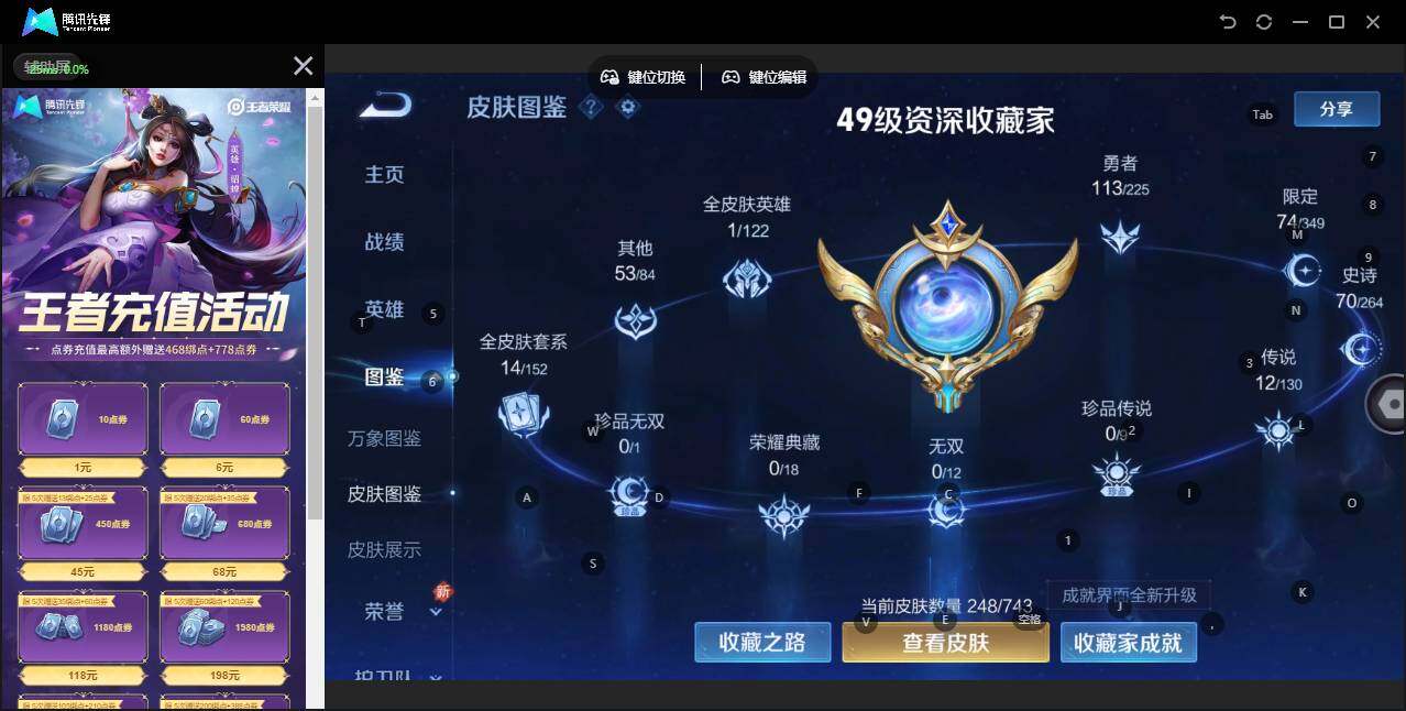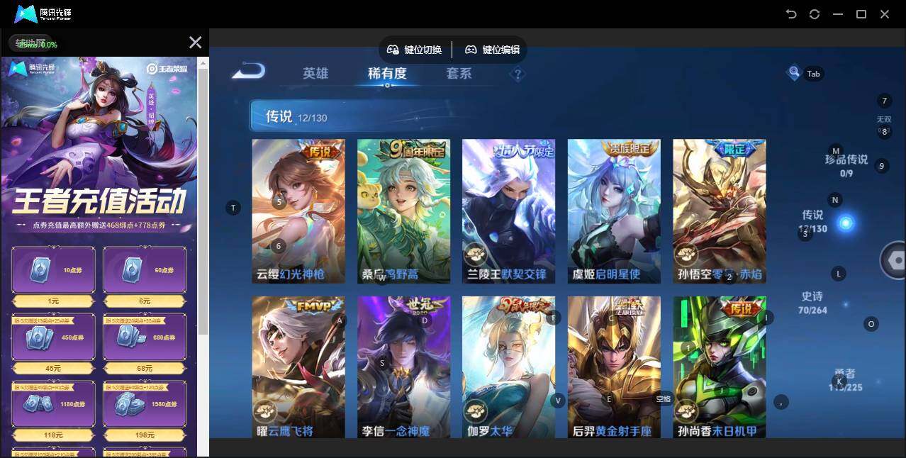 [12916802]安卓Q-V5-最强王者段位-128英雄-248皮肤-1典藏-1星传说-12传说-70史诗