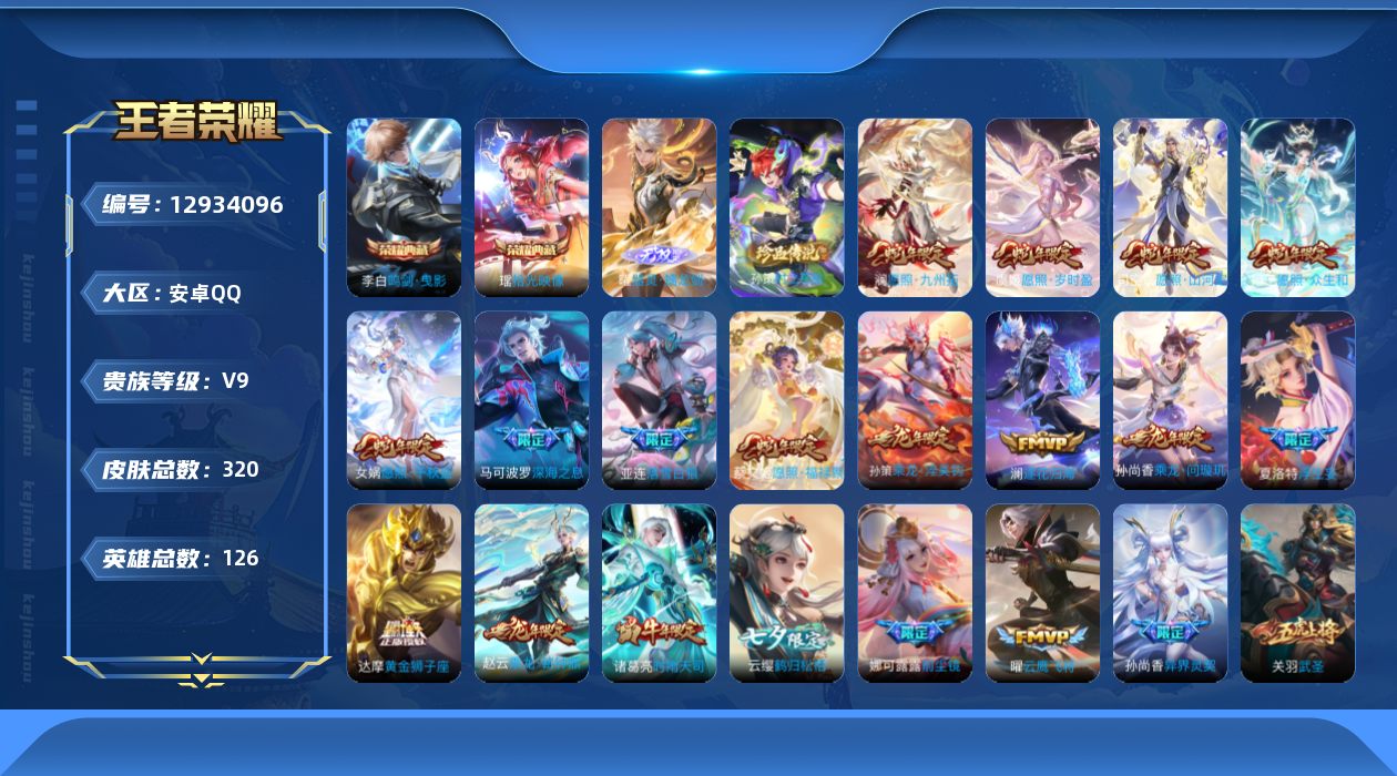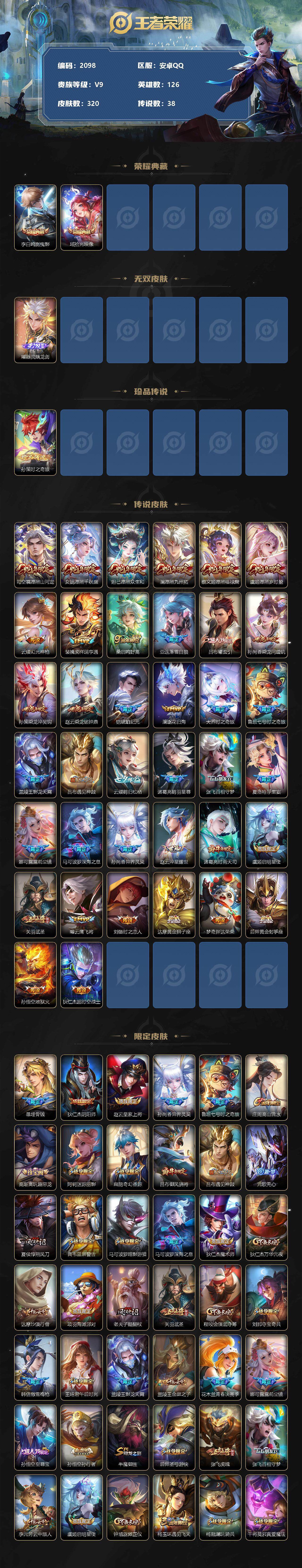 [12934096]安卓Q-V9-至尊星耀II段位-126英雄-320皮肤-2典藏-0珍品无双-1无双-1珍品传说-38传说-97史诗