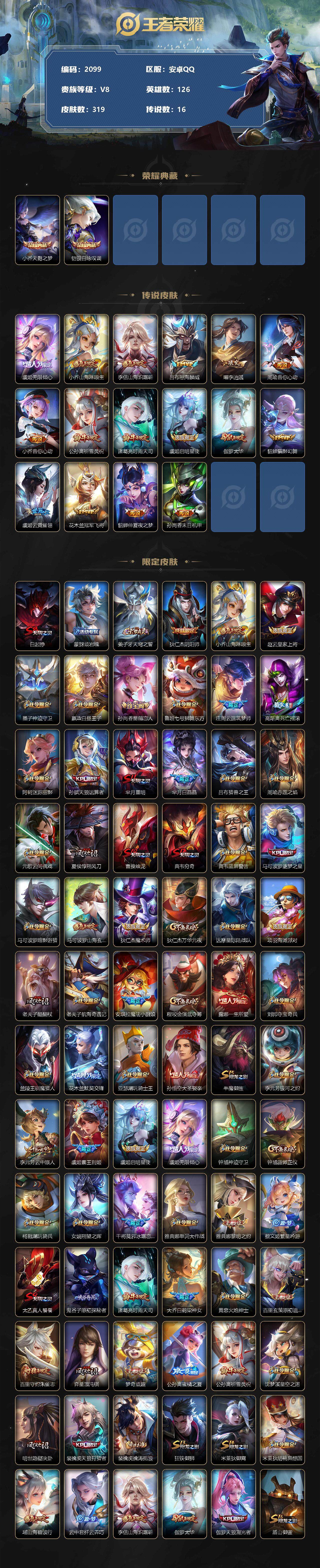[12934125]安卓Q-V8-永恒钻石II段位-126英雄-319皮肤-2典藏-0珍品无双-0无双-0珍品传说-16传说-91史诗