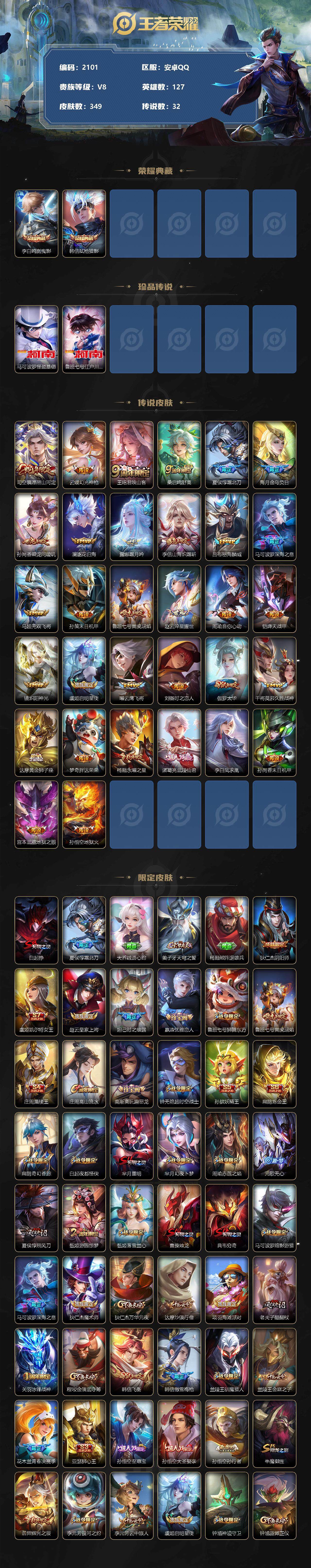 [12934173]安卓Q-V8-至尊星耀IV段位-127英雄-349皮肤-2典藏-0珍品无双-0无双-2珍品传说-32传说-101史诗