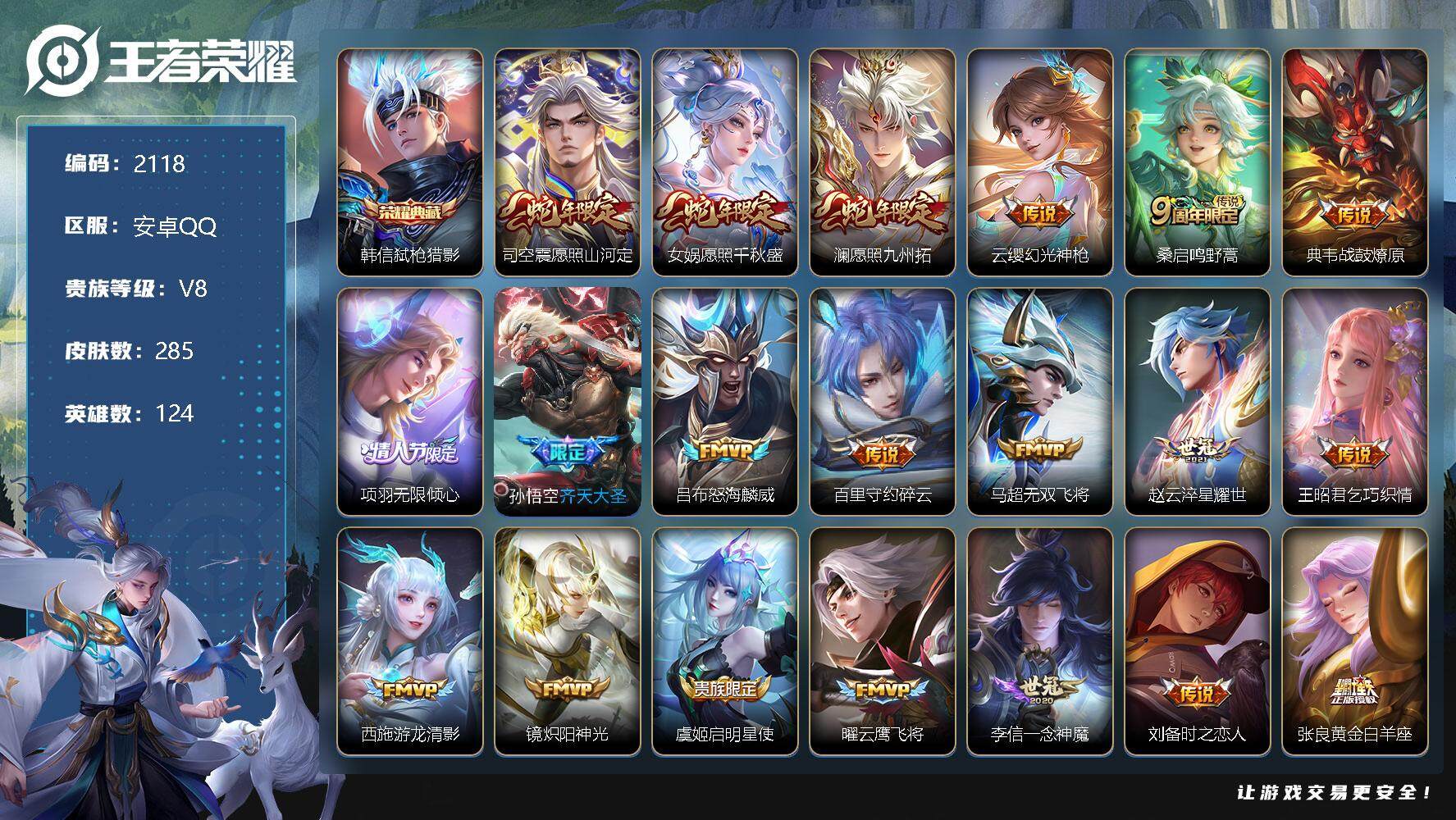 [12934848]安卓Q-V8-永恒钻石IV段位-124英雄-285皮肤-1典藏-0珍品无双-0无双-0珍品传说-26传说-78史诗
